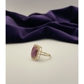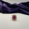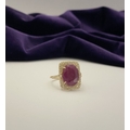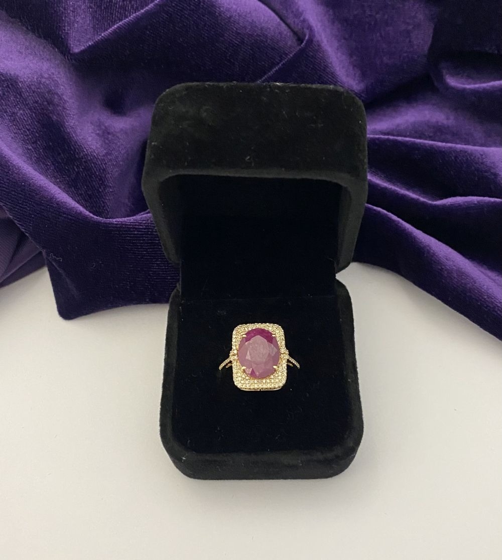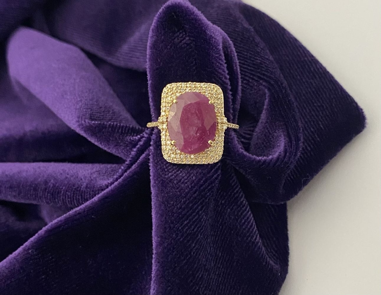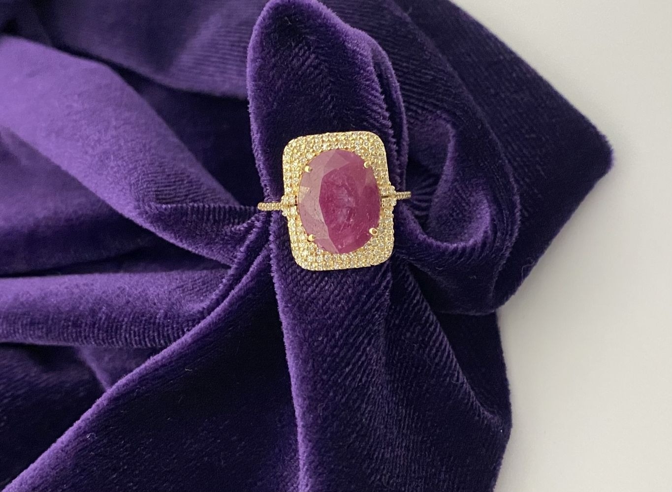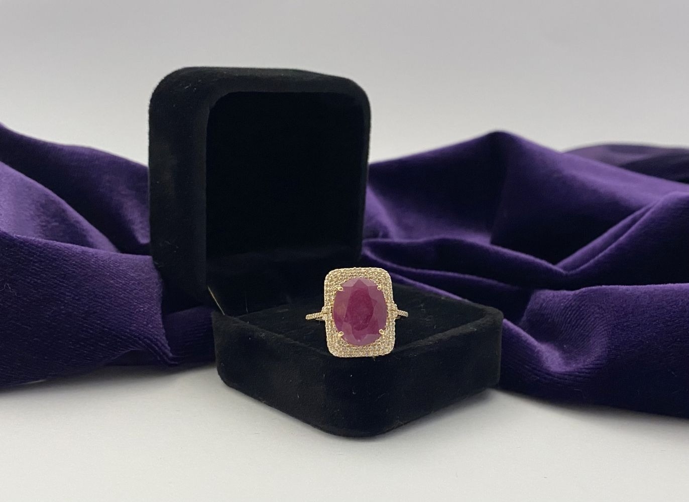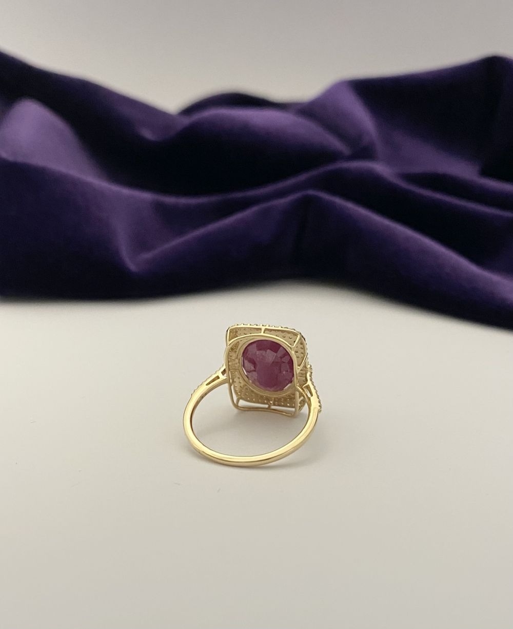 A MAGNIFICENT 14CT GOLD RUBY & DIAMOND STATEMENT RING, with central 6.65ct oval mixed cut ruby, claw set, surrounded by rows of round cut pave set diamonds on raised setting, continuing to shoulders. 112 natural diamonds total, colour: G-H, clarity: SI-I1, total weight: .33ct approx. Hallmarked JTQ 14K to interior band. Ring Size: N. Complete with International Gemological Institute Report.