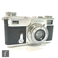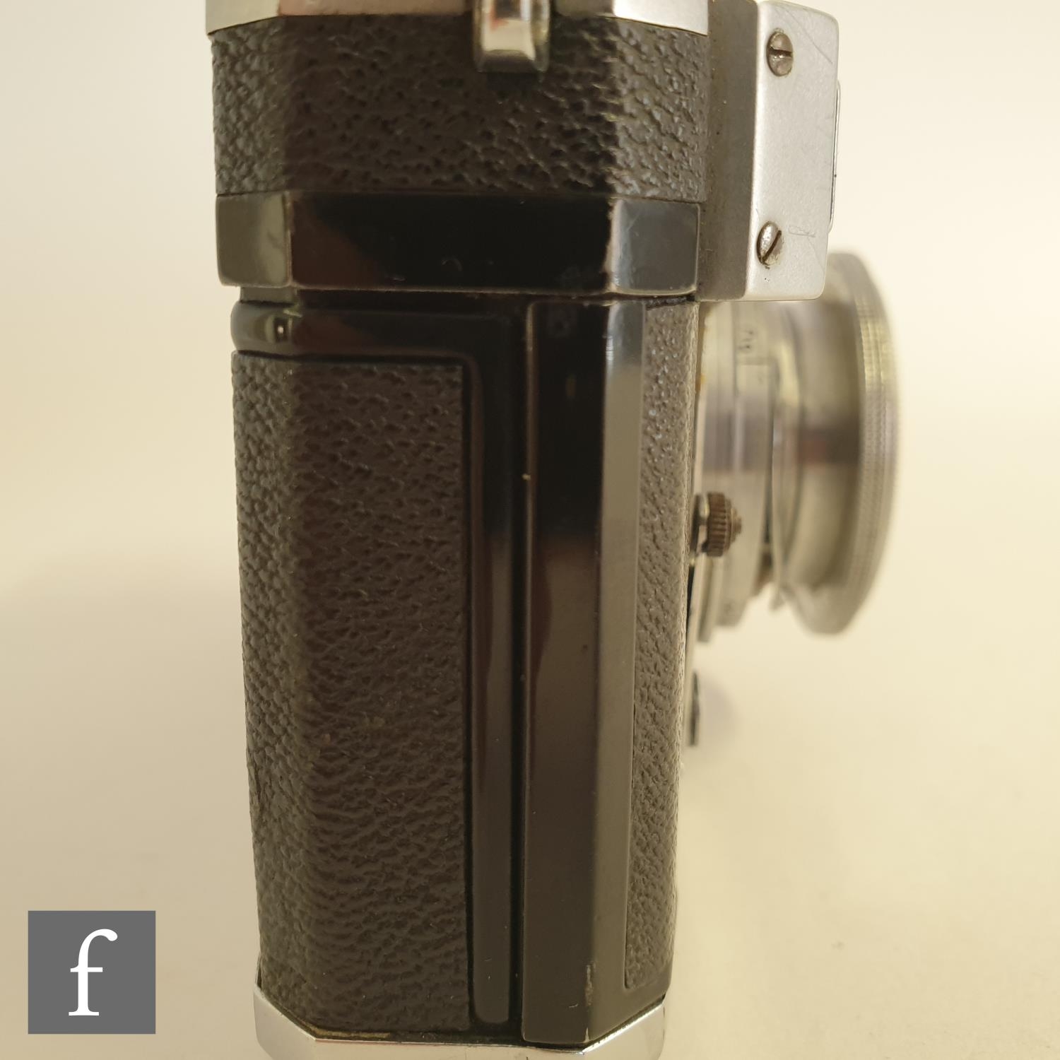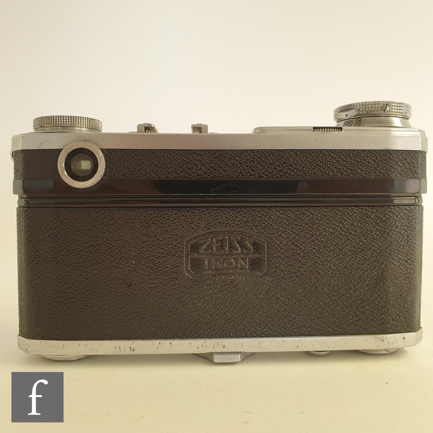 A Zeiss Ikon Contax II 35mm rangefinder camera, serial number B31005, together with a Carl Zeiss 1:2, 8.5cm lens, serial number 1578342, sold with original tan leather case.
