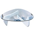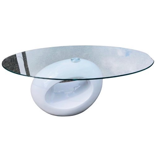 Contemporary glass topped coffee table in mid century manner. 96cm long x 44cm high