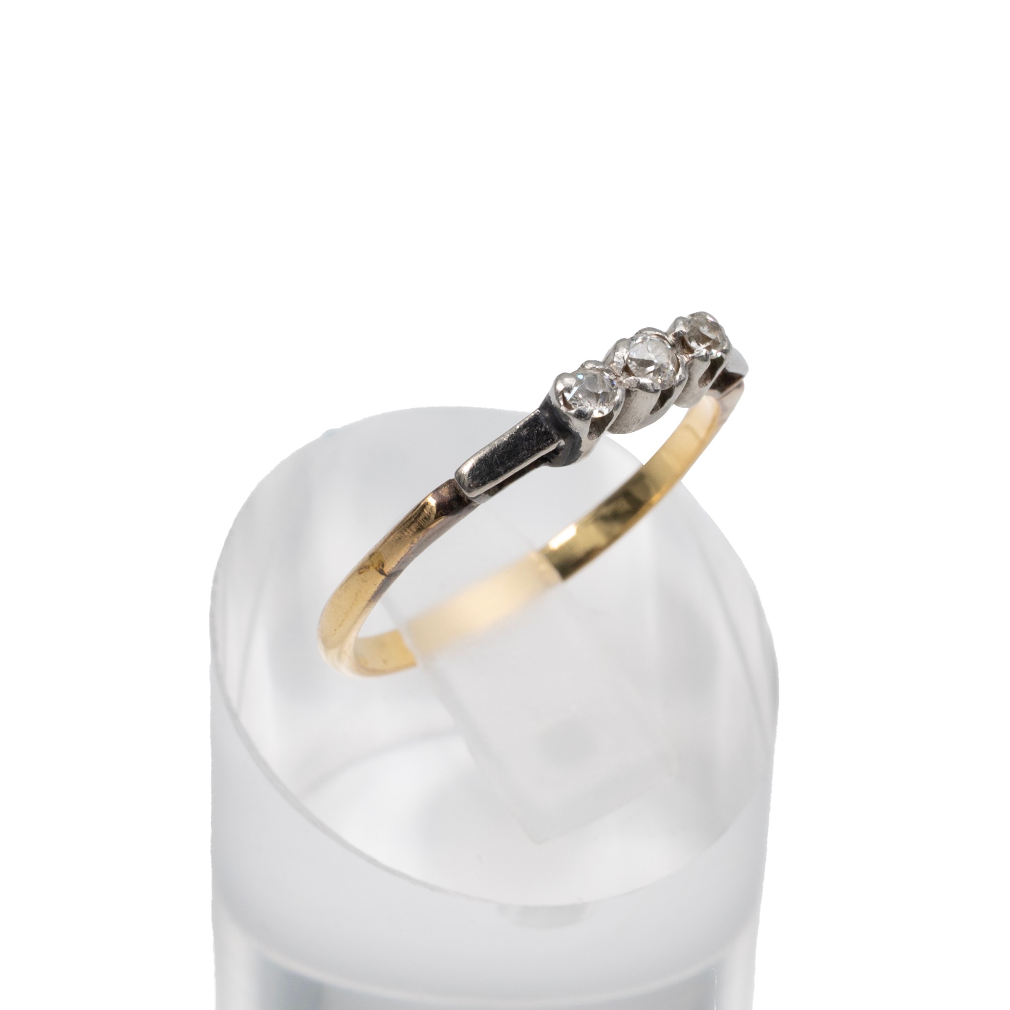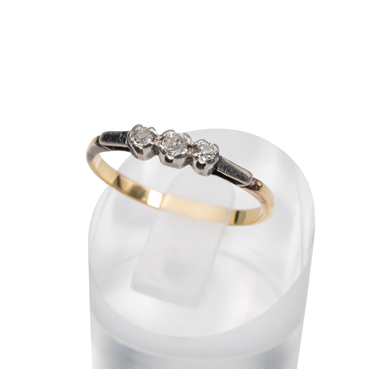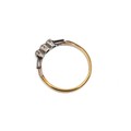 9ct gold three stone gem set ring, size R, weight 2.3 grams.