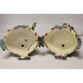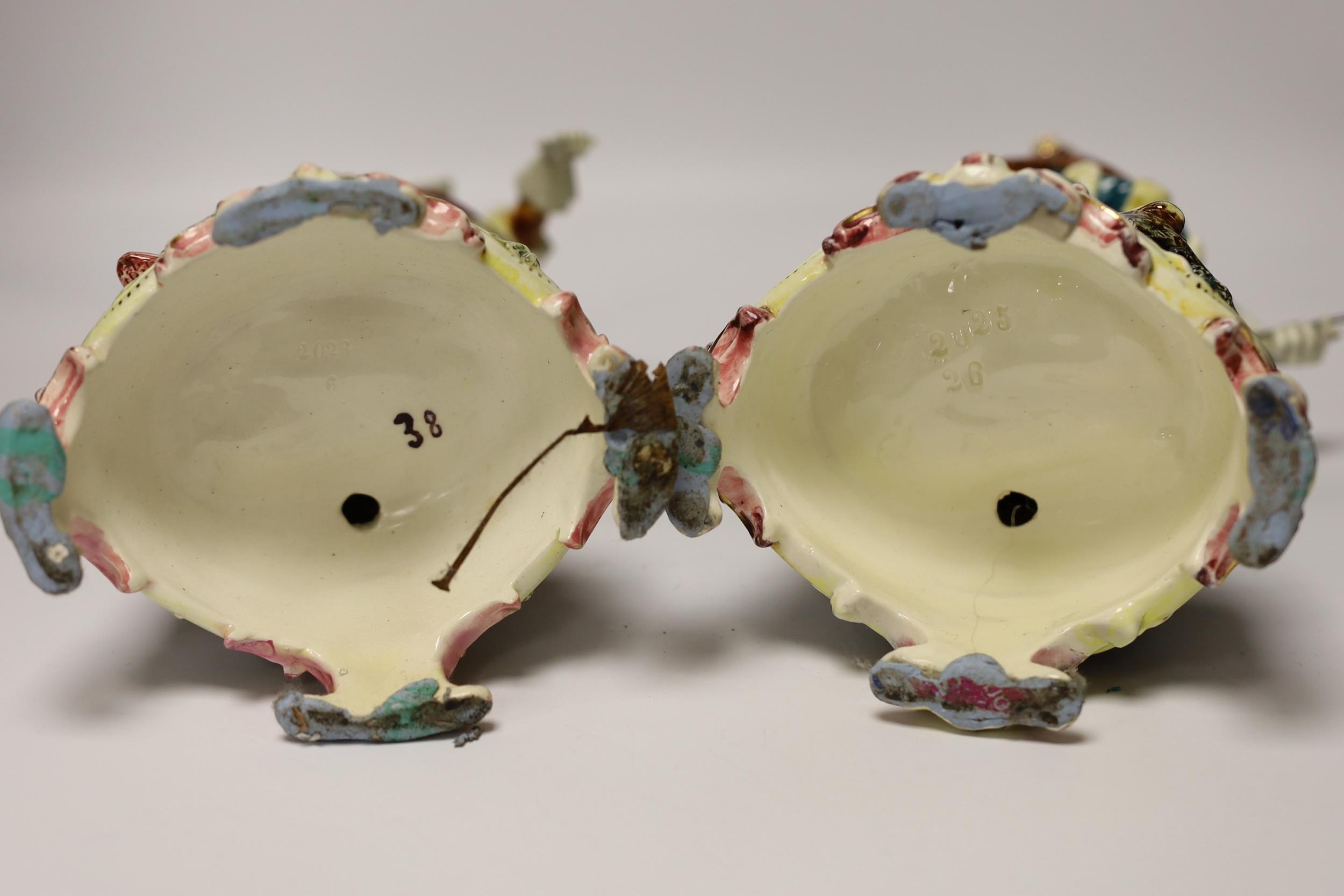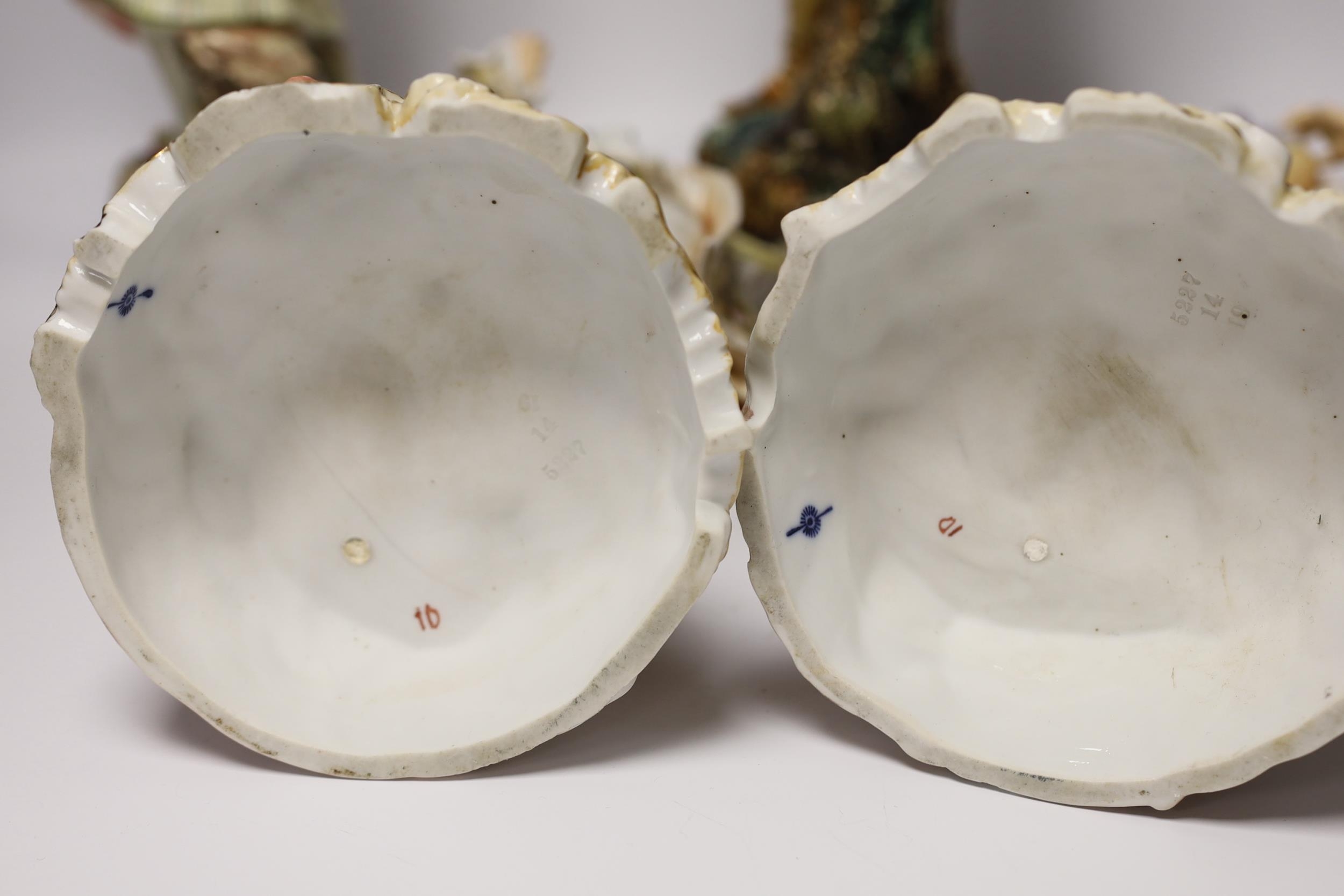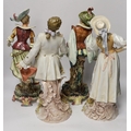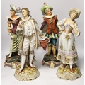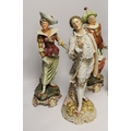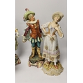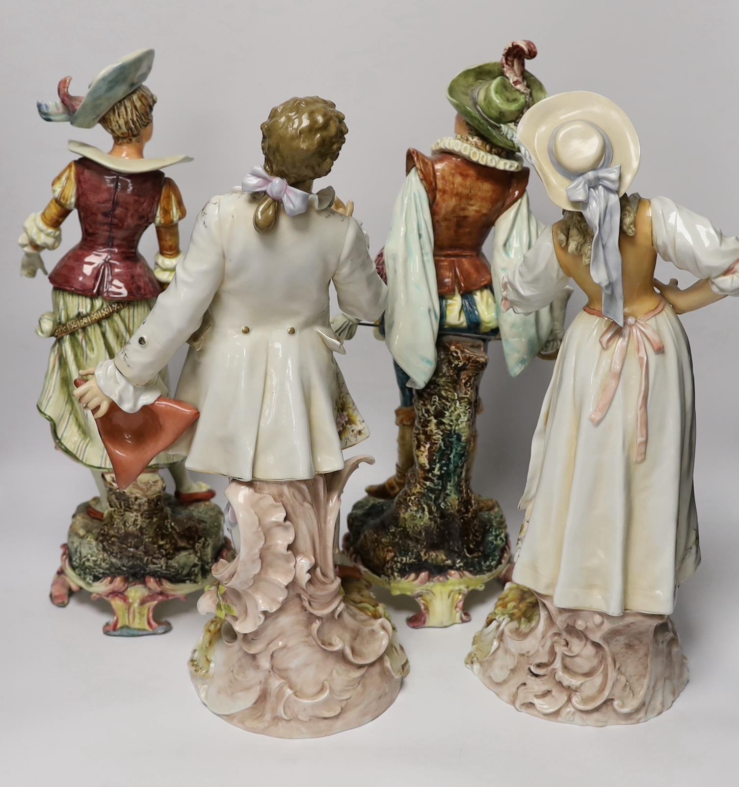 A pair of Volkstedt porcelain figures and a pair continental earthenware figures, 42cm