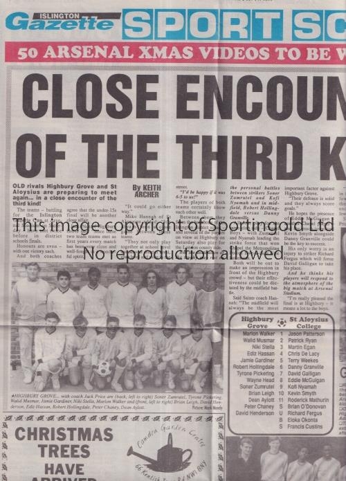1990 ISLINGTON GAZETTE SCHOOLS CUP FINAL Arsenal F.C. did not issue a programme on order to encourage spectators to buy the newspaper. The only programme issued was the team line-ups from the page in the newspaper. Good
