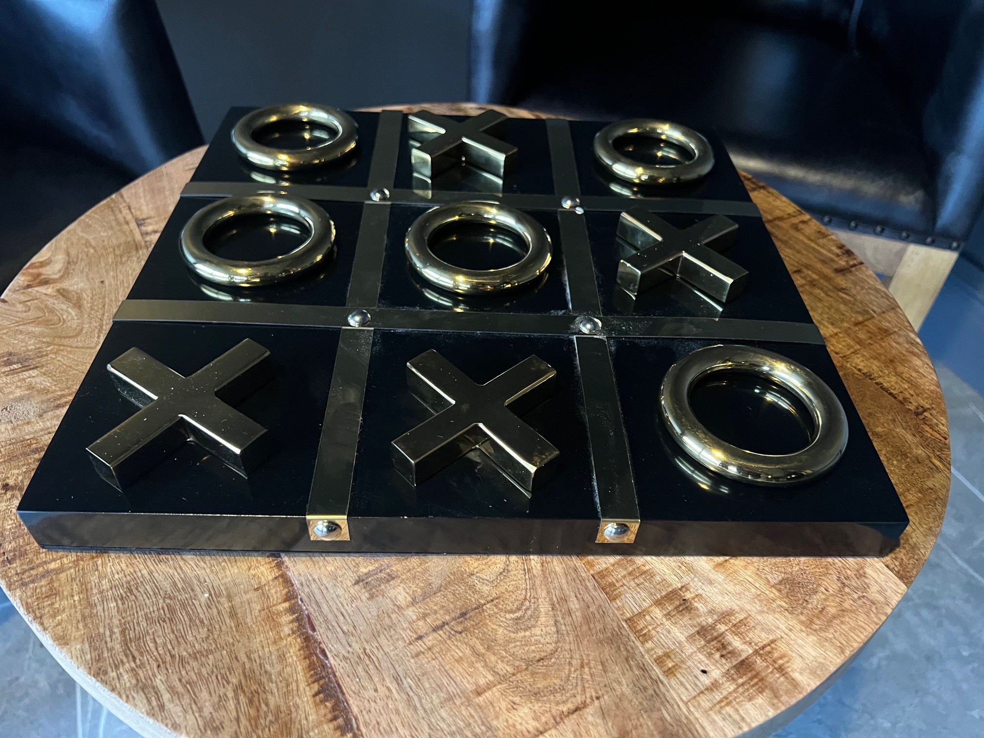 NEW BOXED QUALITY BLACK AND GOLD NOUGHTS AND CROSSES GAME SET