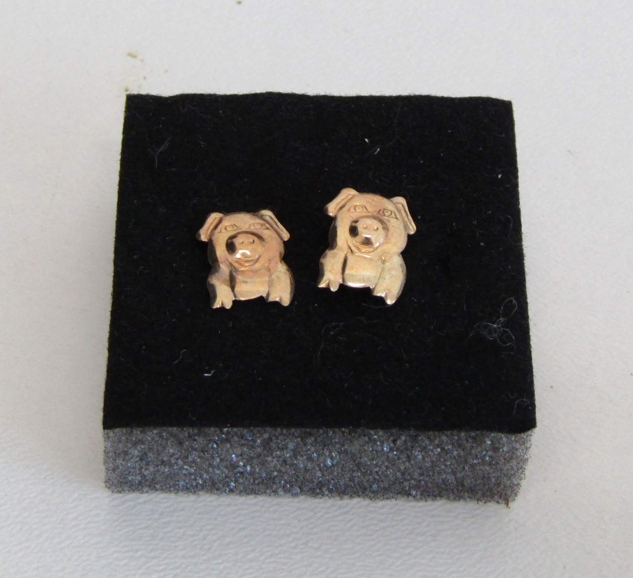 A pair of 9ct gold pig stud earrings, 0.4g.