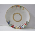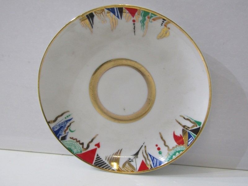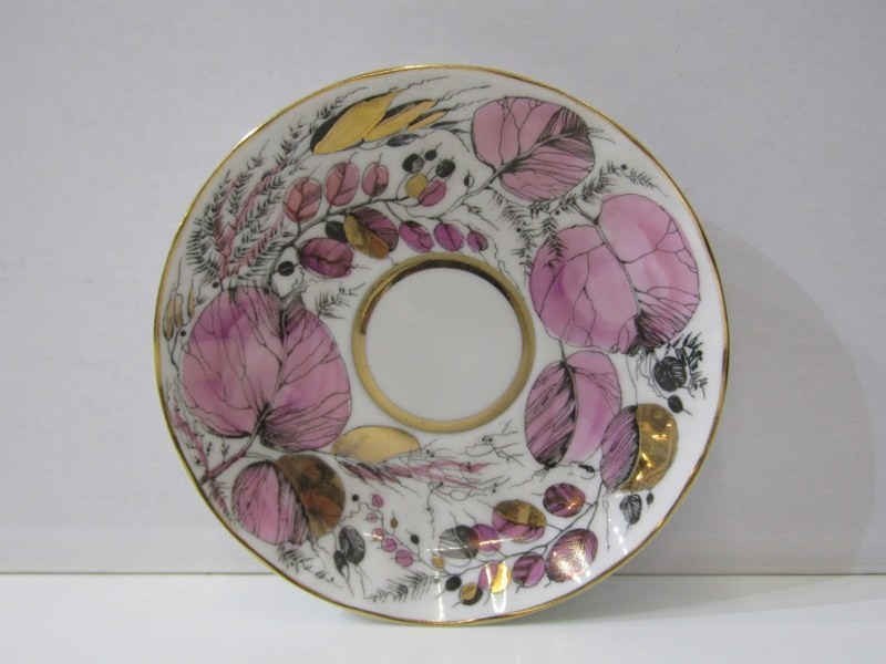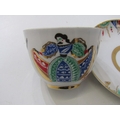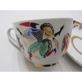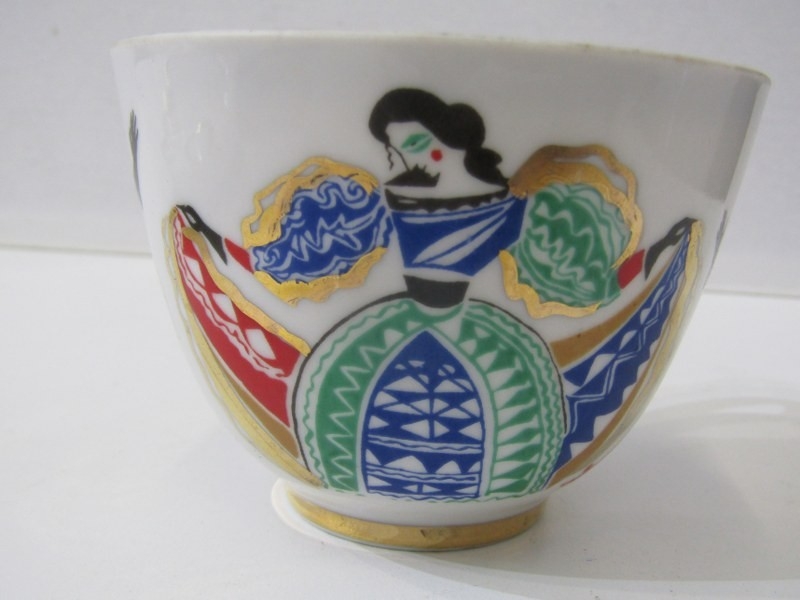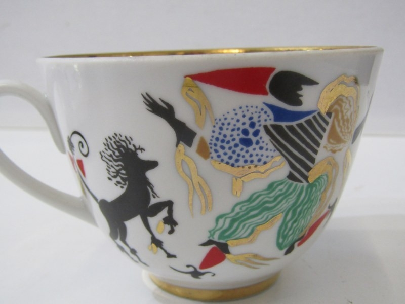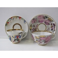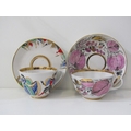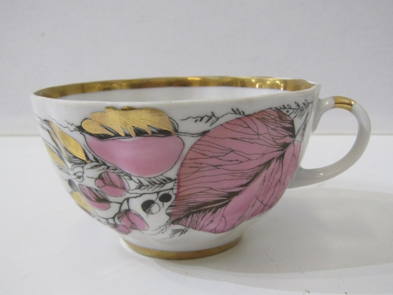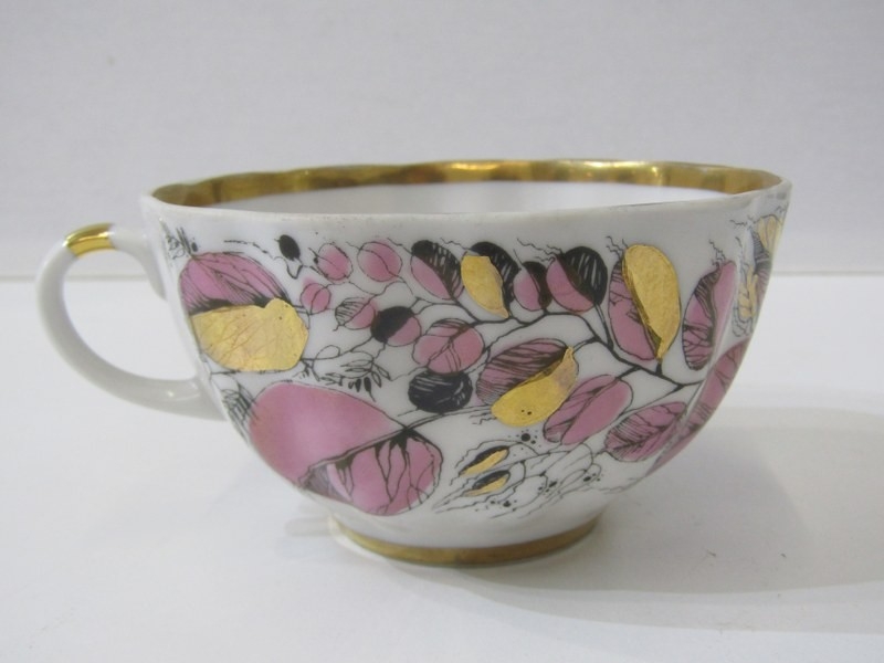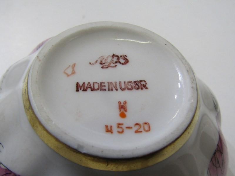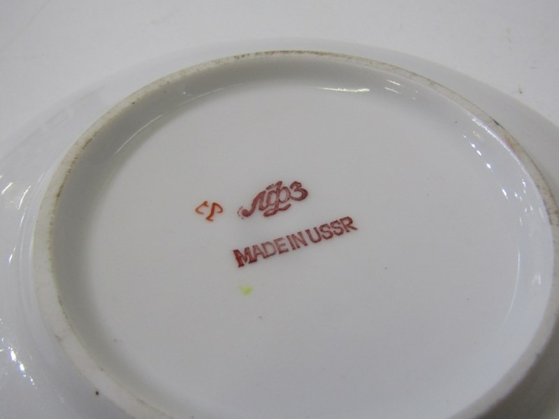 RUSSIAN PORCELAIN, 2 Lomonosov porcelain cups and saucers, 1 depicting Russian dancers, other floral decoration