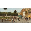CONTINENTAL SCHOOL Street scene with carriages and trams o...