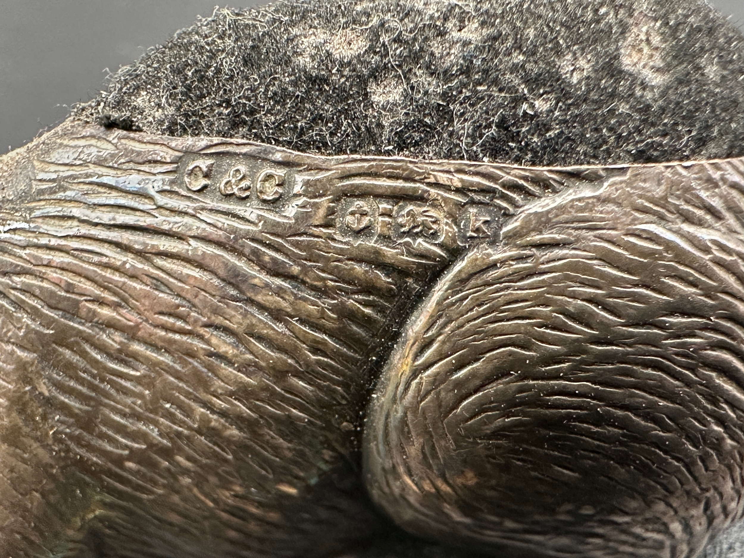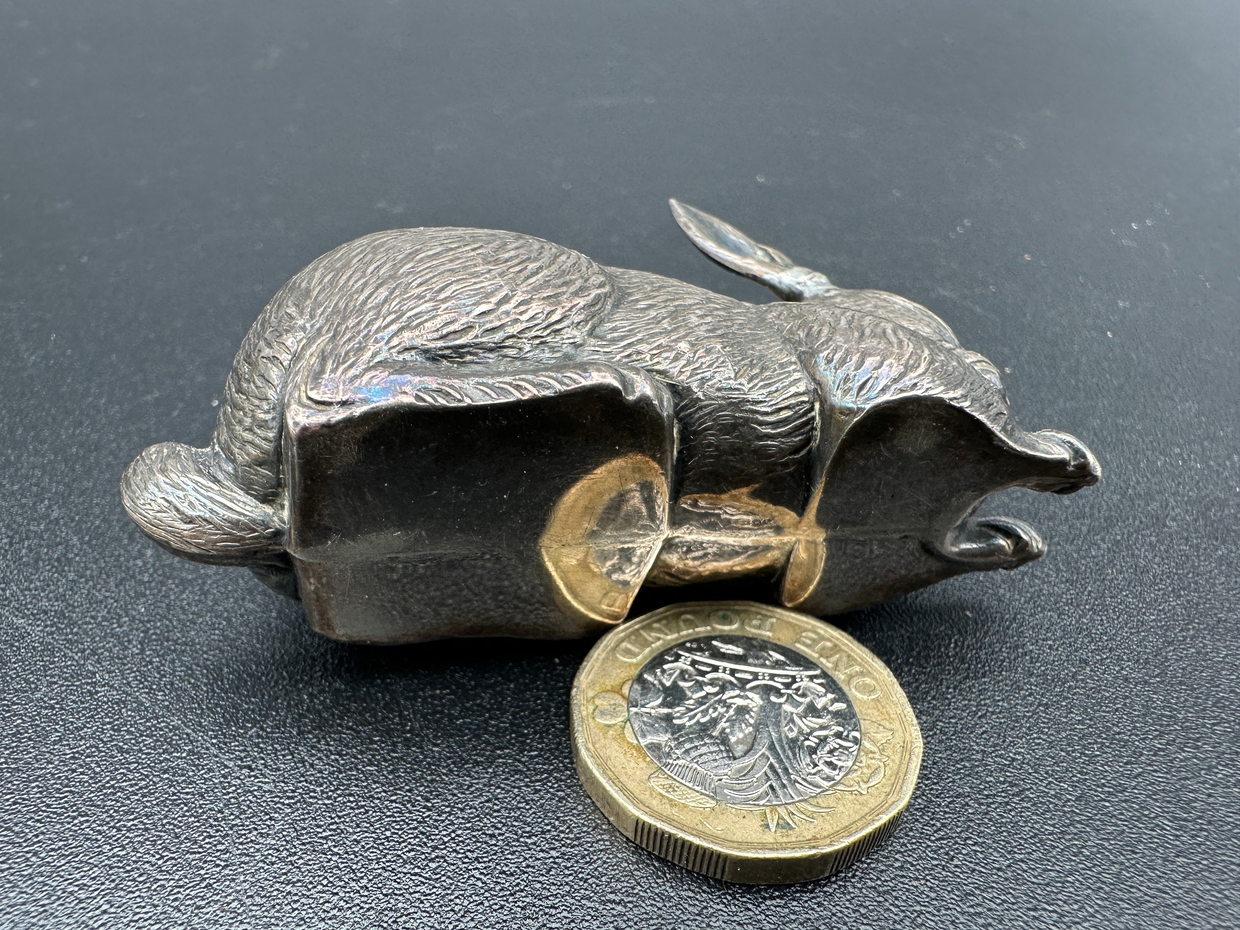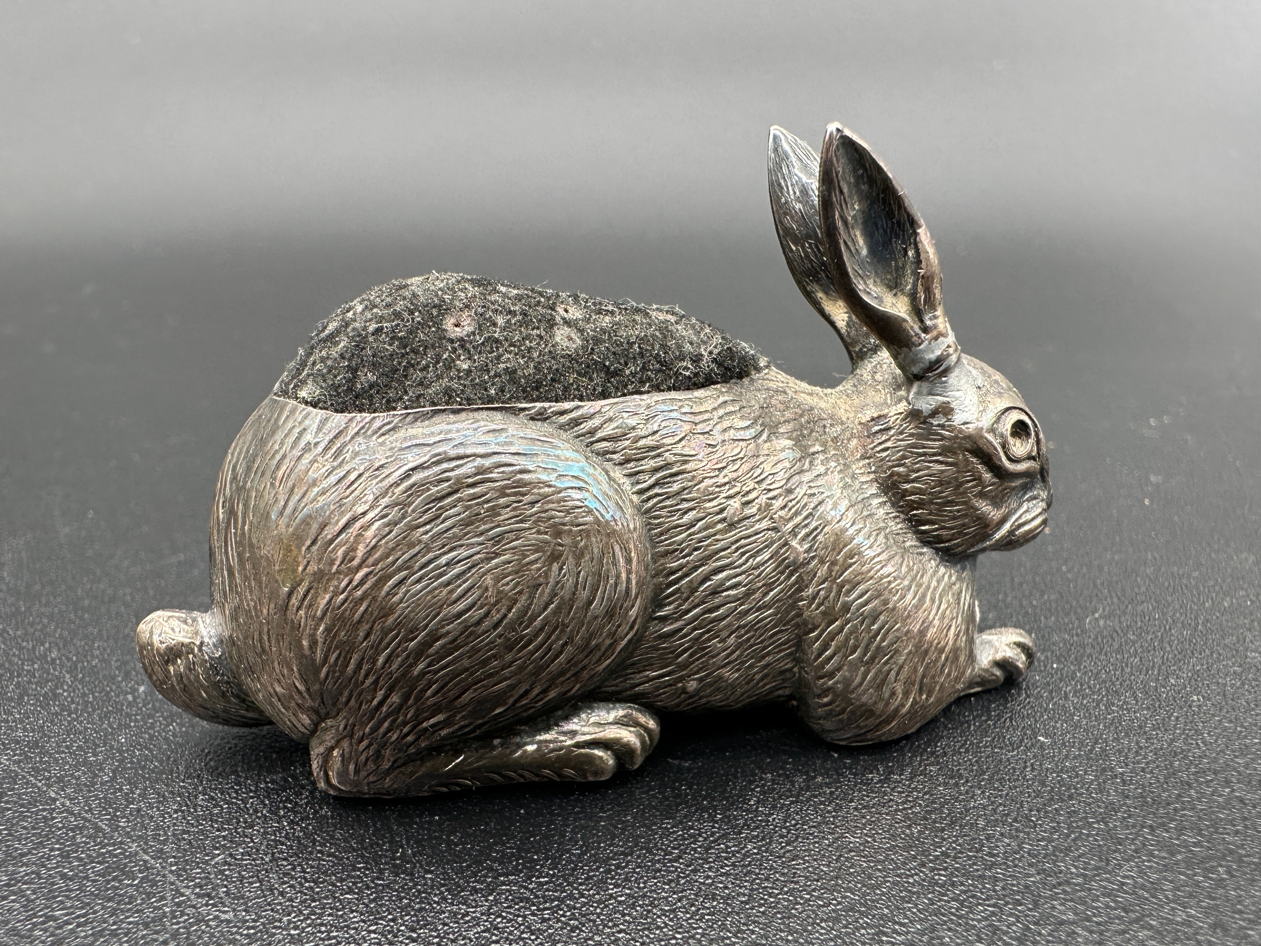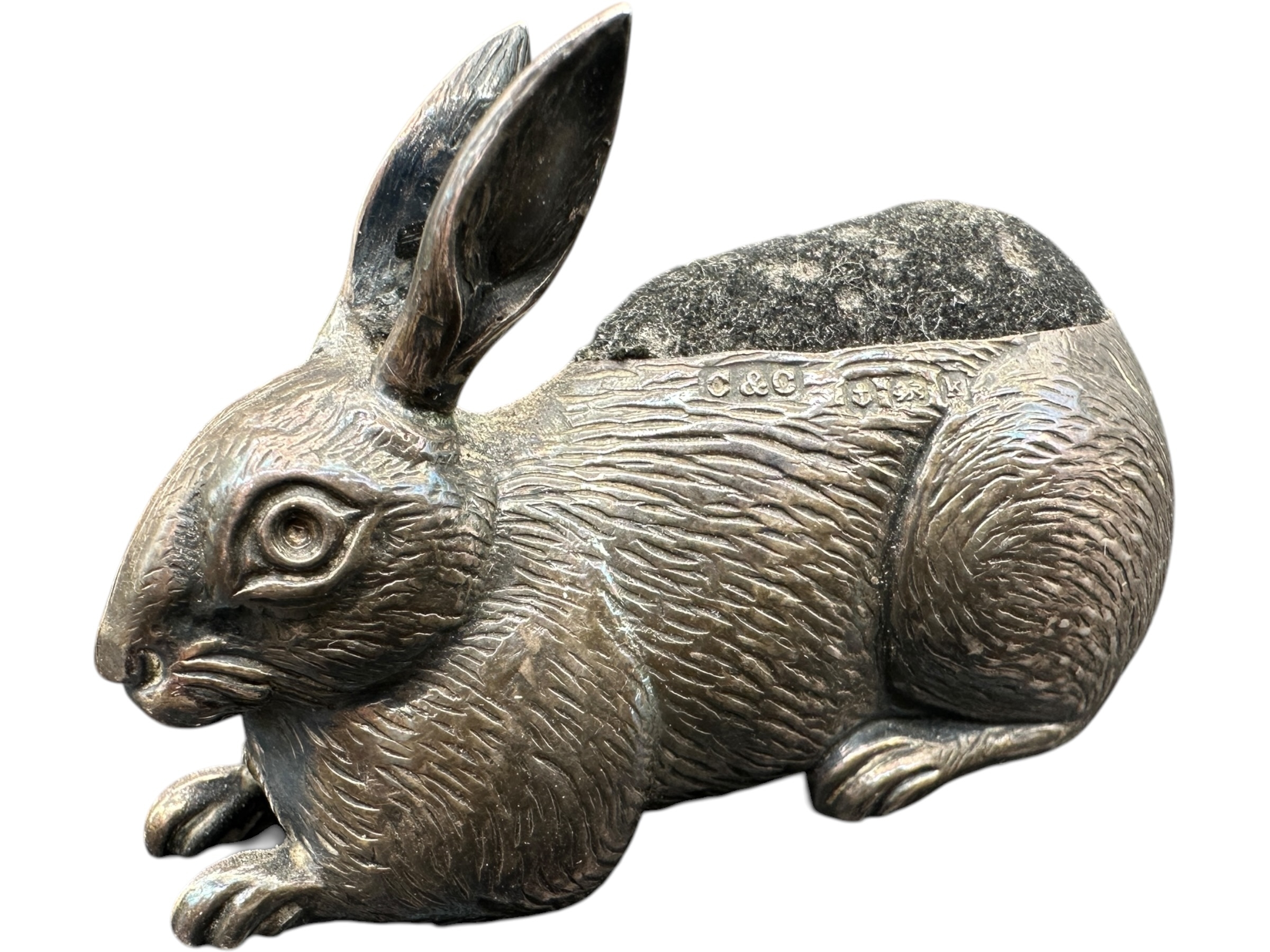 Antique Hallmarked Silver Rabbit Pin Cushion. Birmingham 1909. by Cohen & Charles. Repair to one ear.