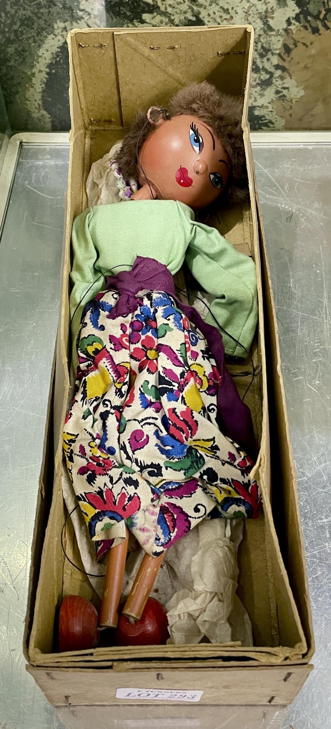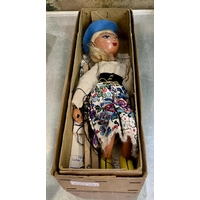 A BOXED VINTAGE PELHAM PUPPET - 'SIMPLE DANCING PUPPET' ORIGINAL BOX AND INSTRUCTIONS SOMETIMES CALLED THE GYPSY GIRL