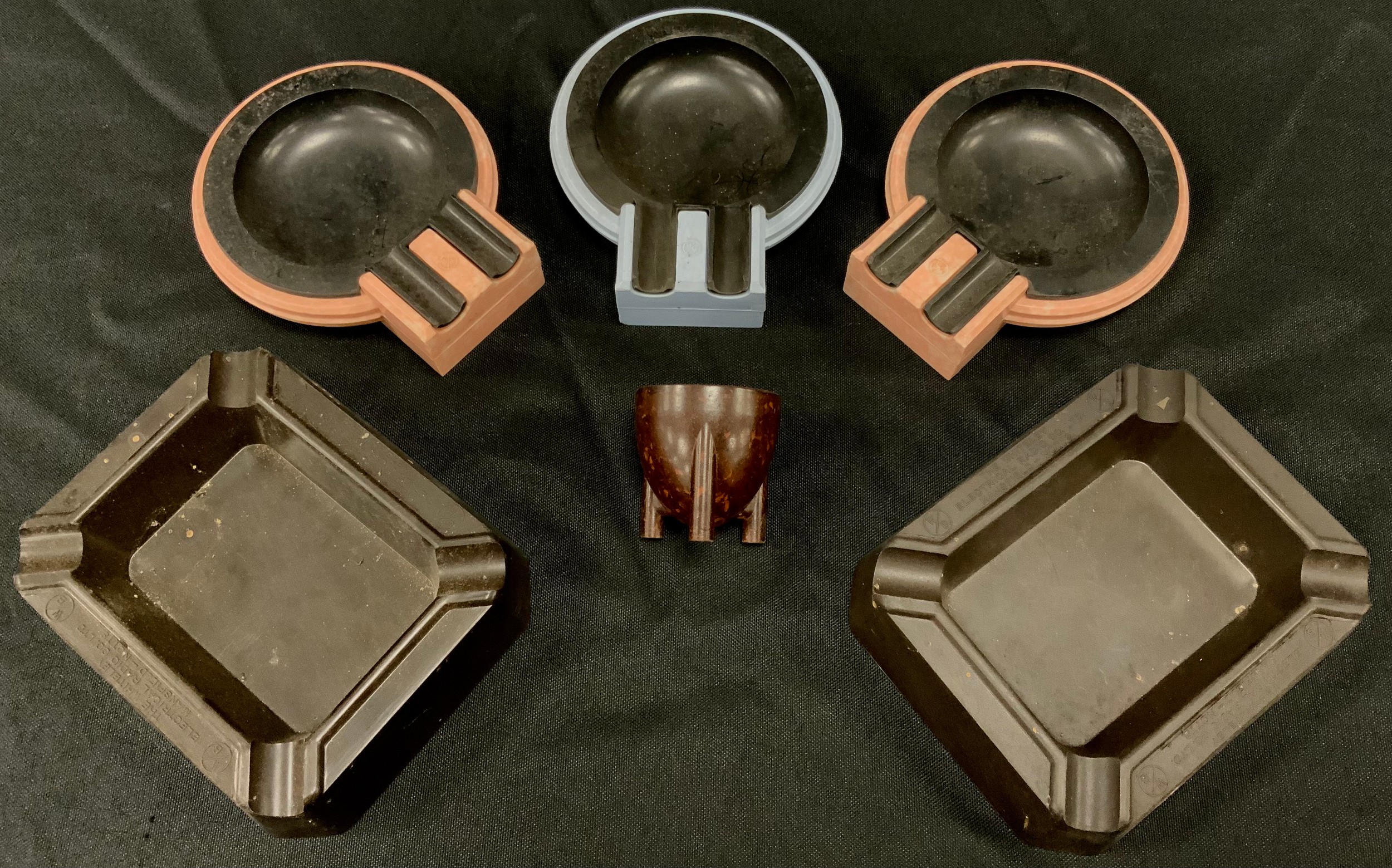 Whiteley Electrical Radio Company, Mansfield Nottingham Bakelite ashtrays, c.1930 (6)