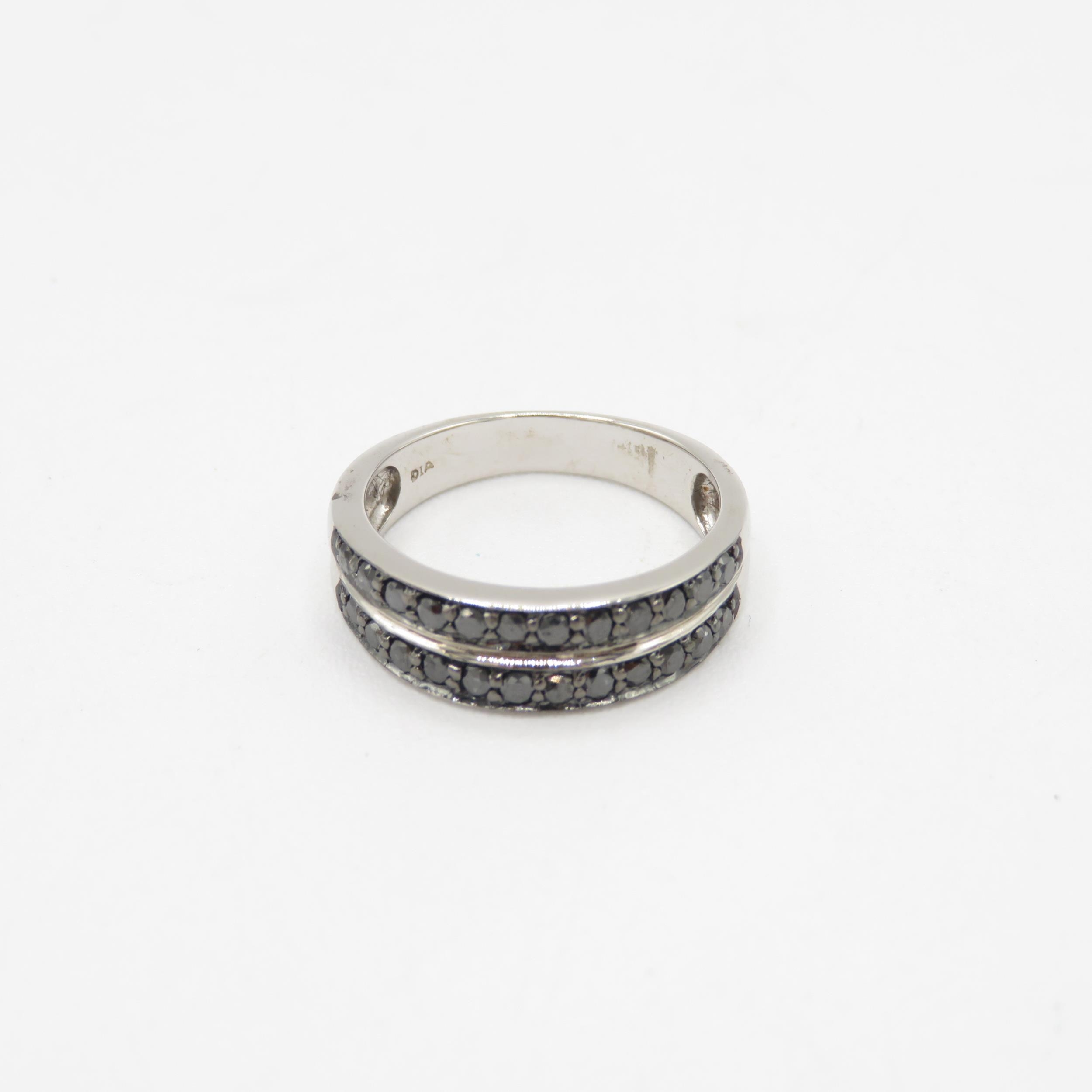 9ct gold black gemstone two row half eternity ring (3.1g) Size L