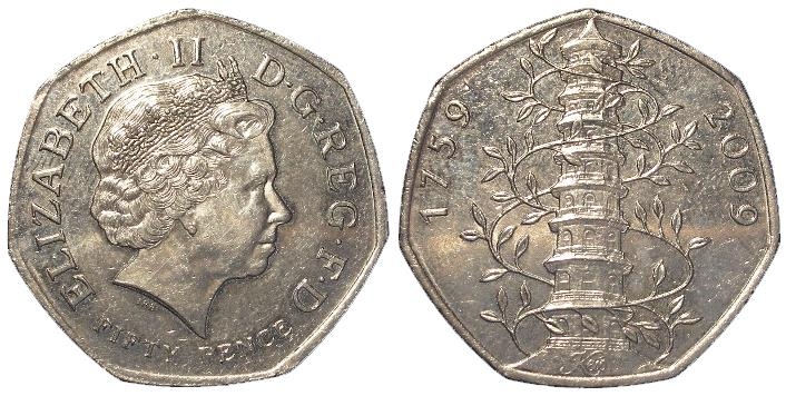Fifty Pence 2009 Kew Gardens, currency issue, EF