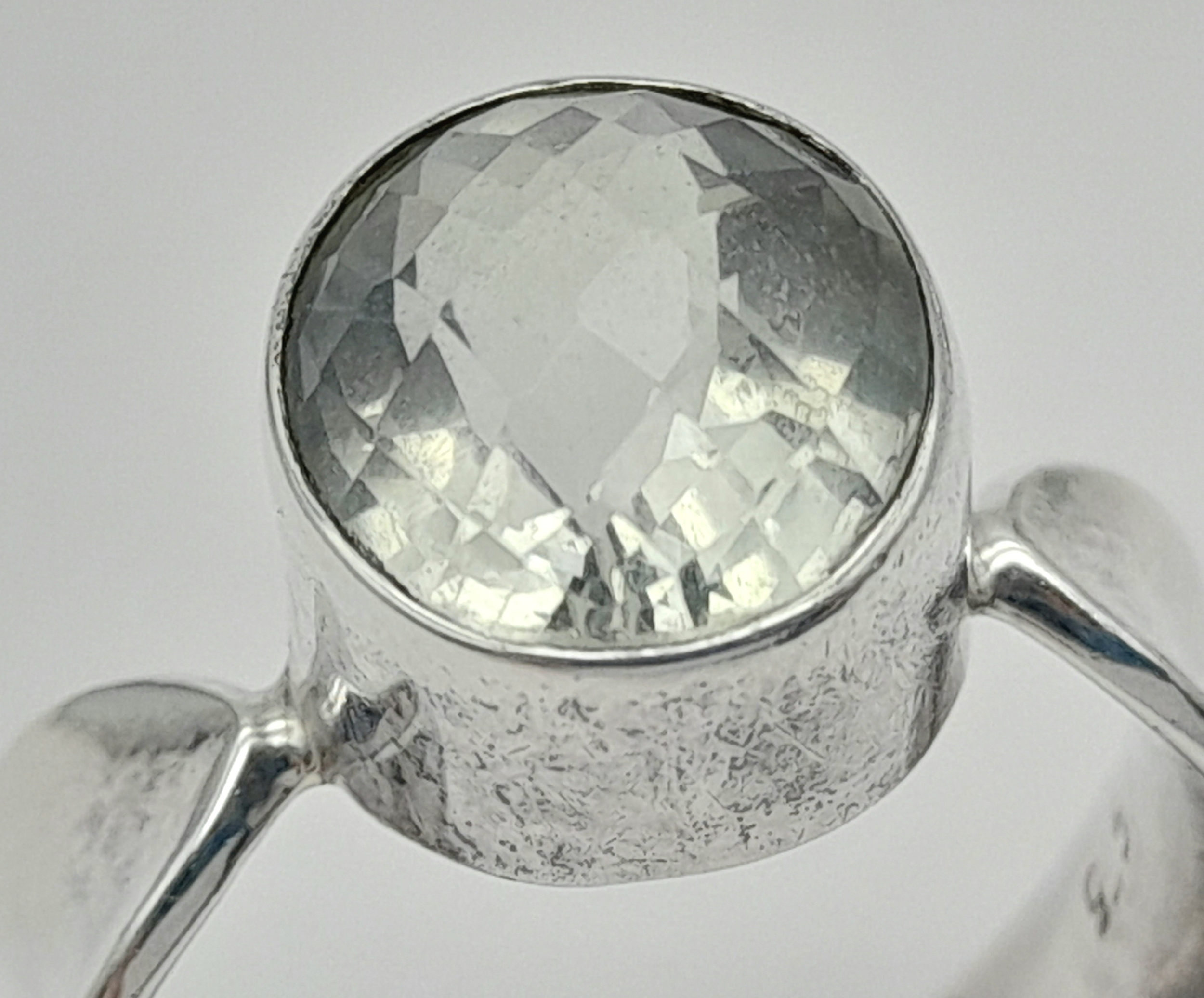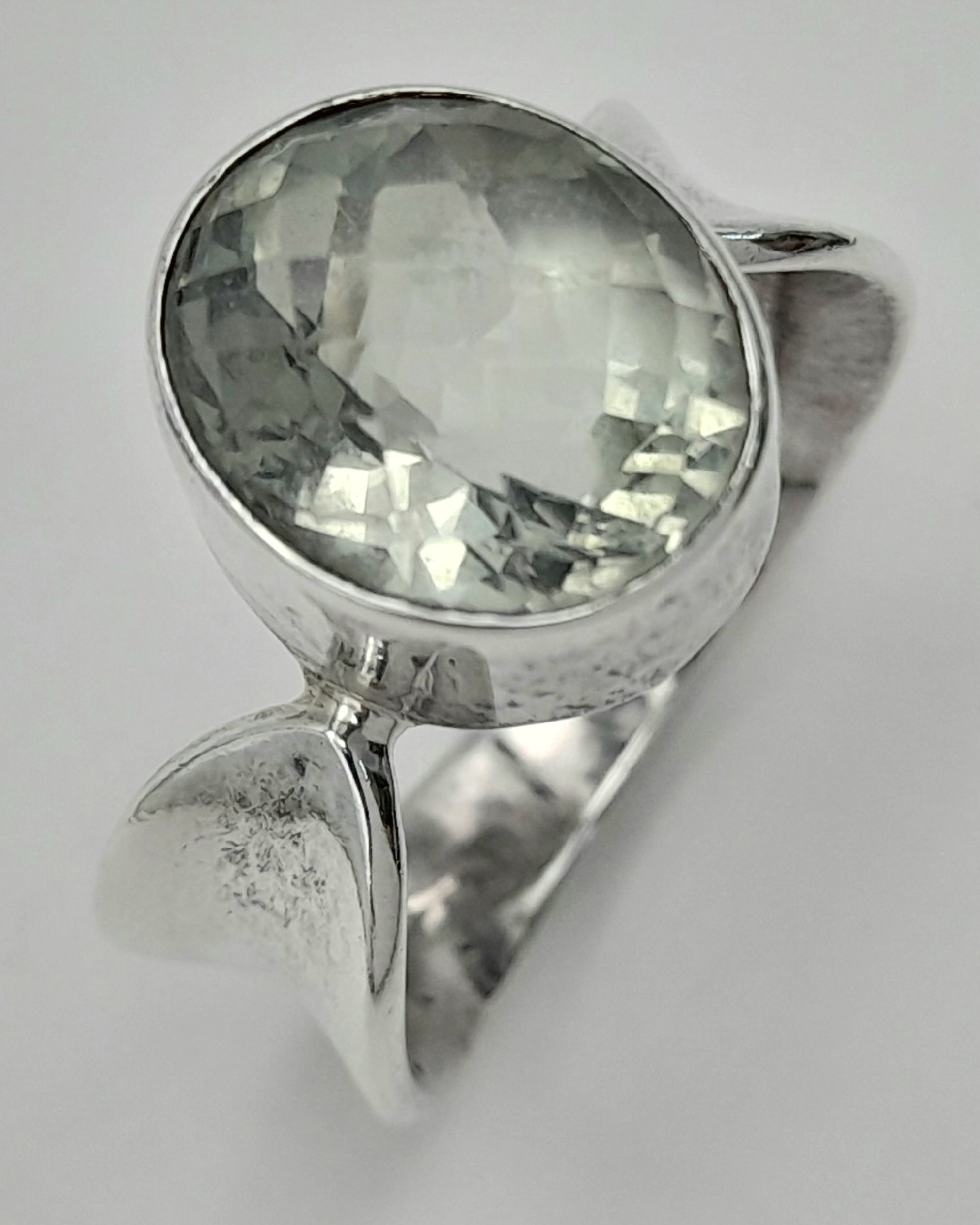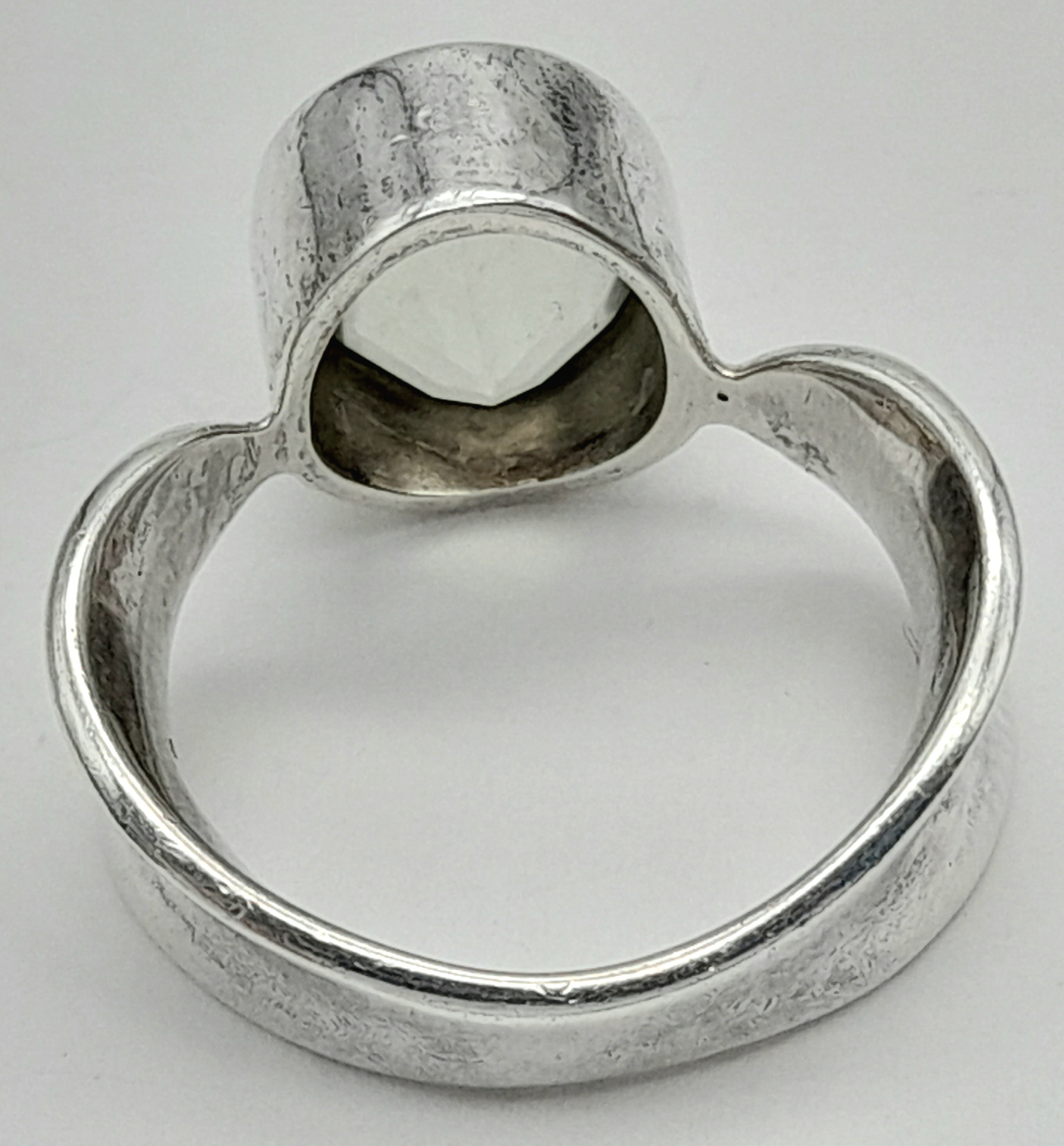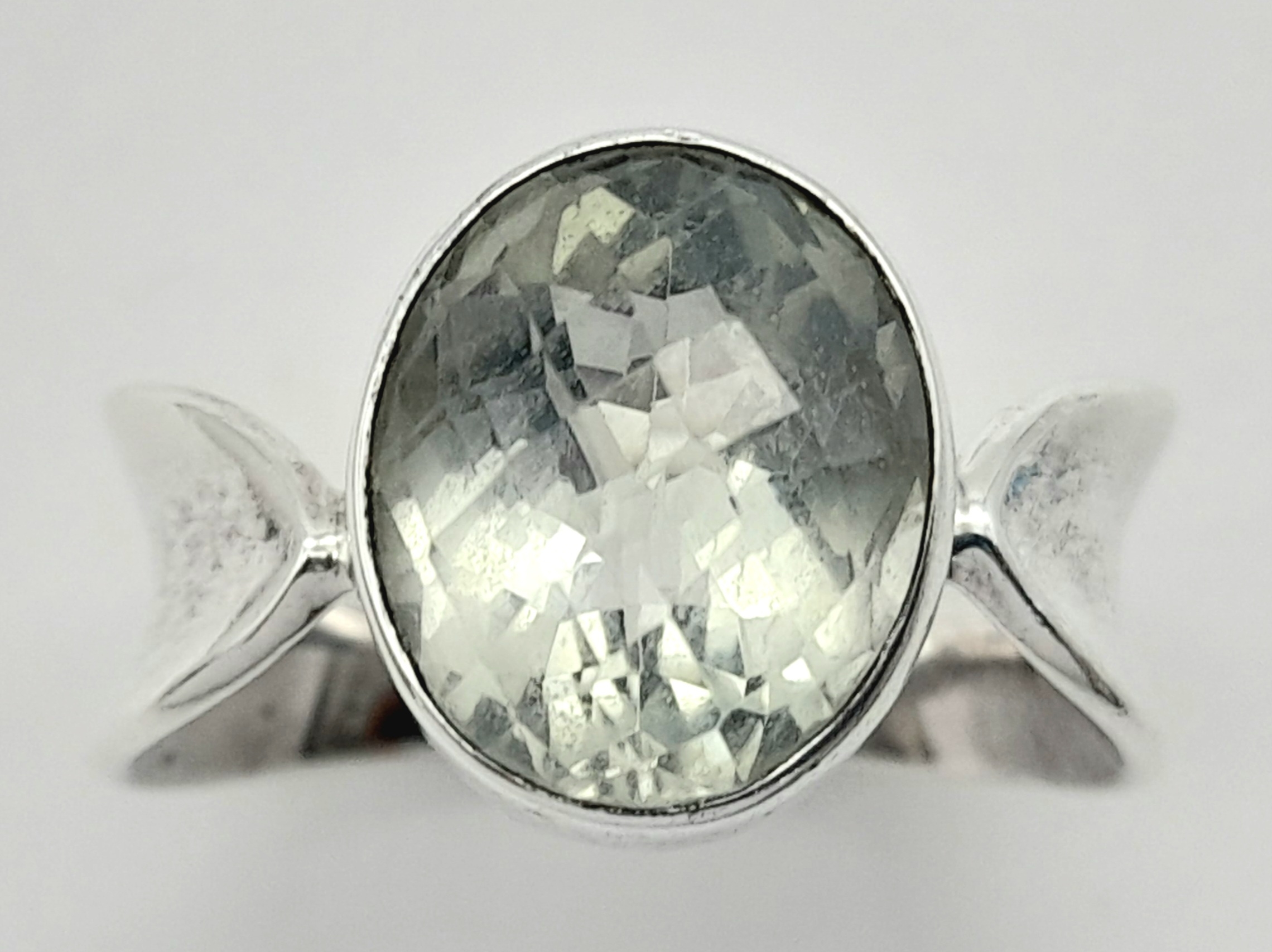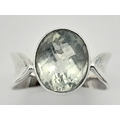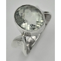 A 925 silver Oval faceted Green Amethyst ring. Total weight 6.9G. Size O/P.