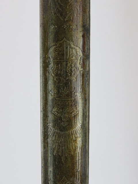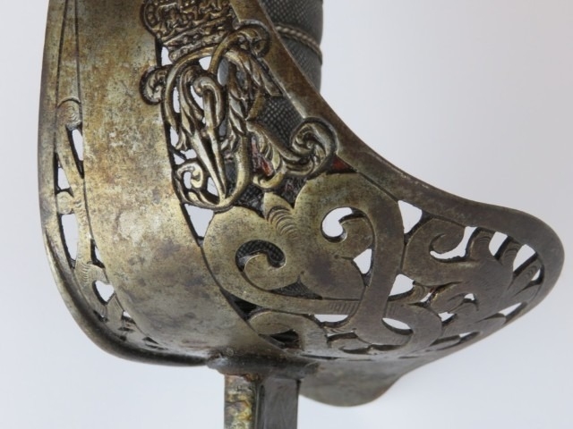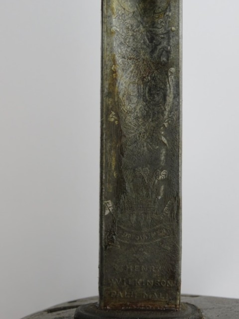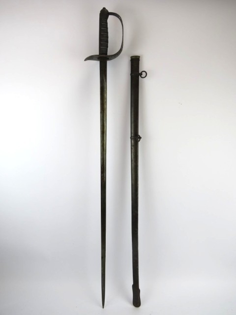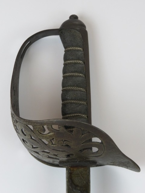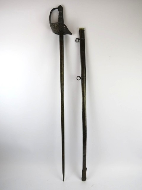 A Victorian British Army Officers 1897 pattern dress sword with scabbard by Wilkinson Sword. With fish skin grip. Blade numbered: 31690. 100.8 cm total length.
