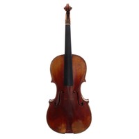 19th century violin in need of restoration labelled San Serafin..., 14 1/16", 35.70cm
