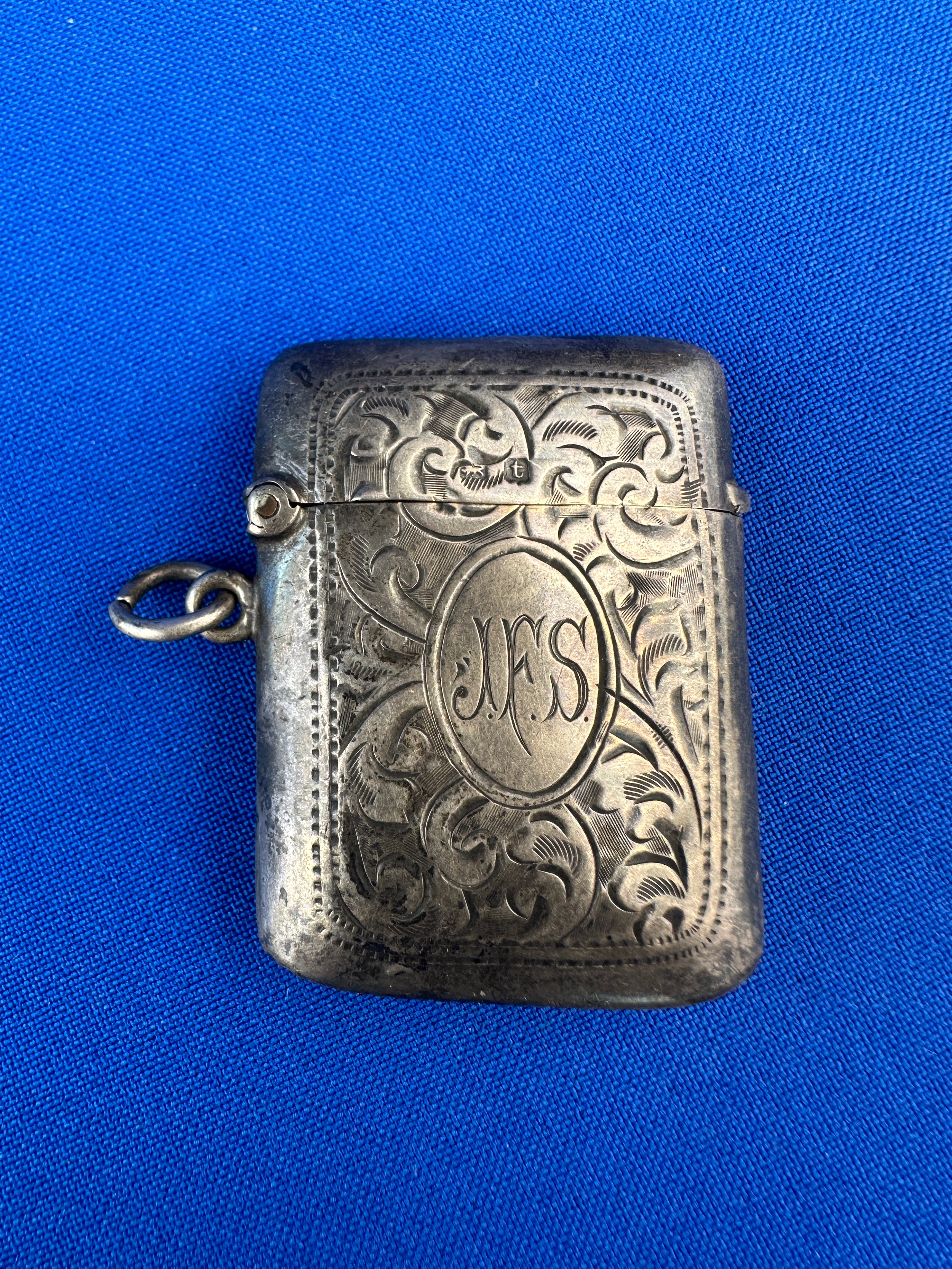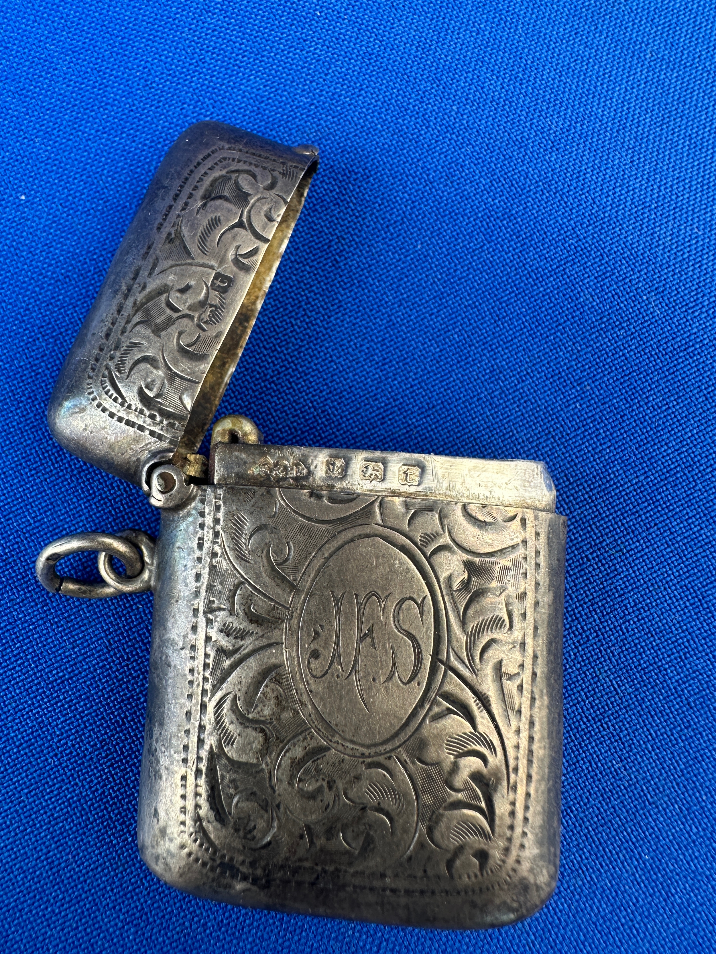 Hallmarked Silver Vesta Cast with Foliate Engraving - Birmingham 1918