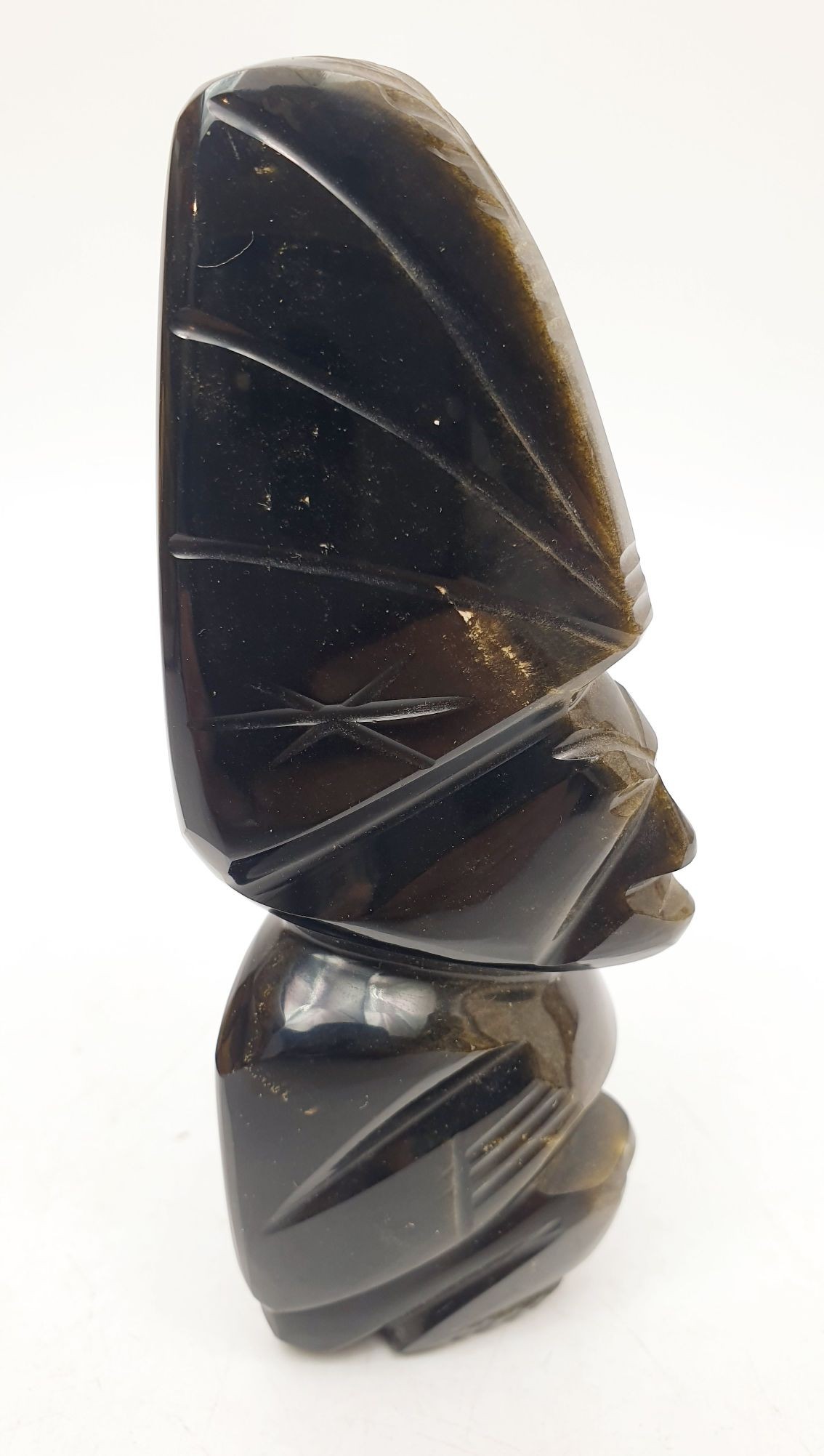 A hard stone carving having a golden sheen, height 5". UK shipping £14.