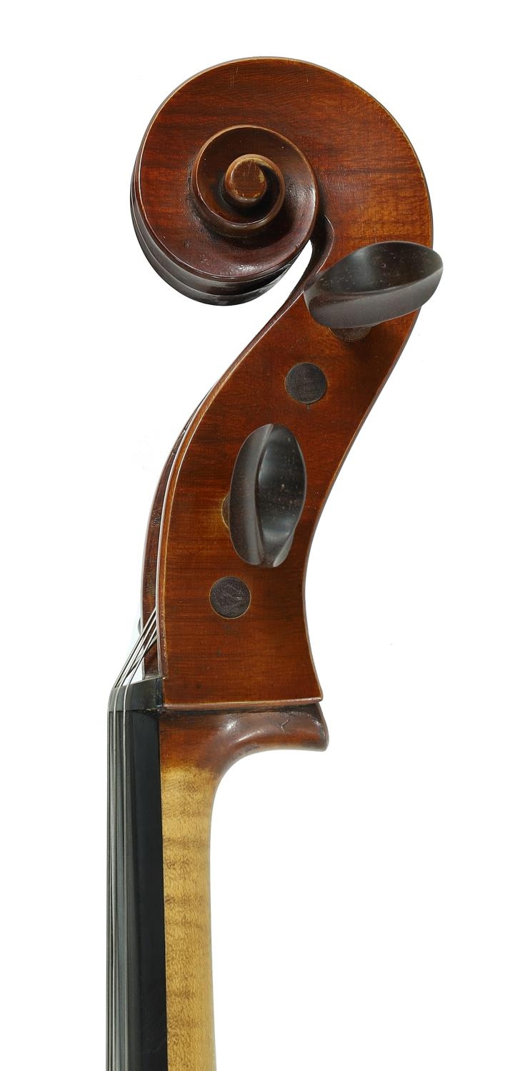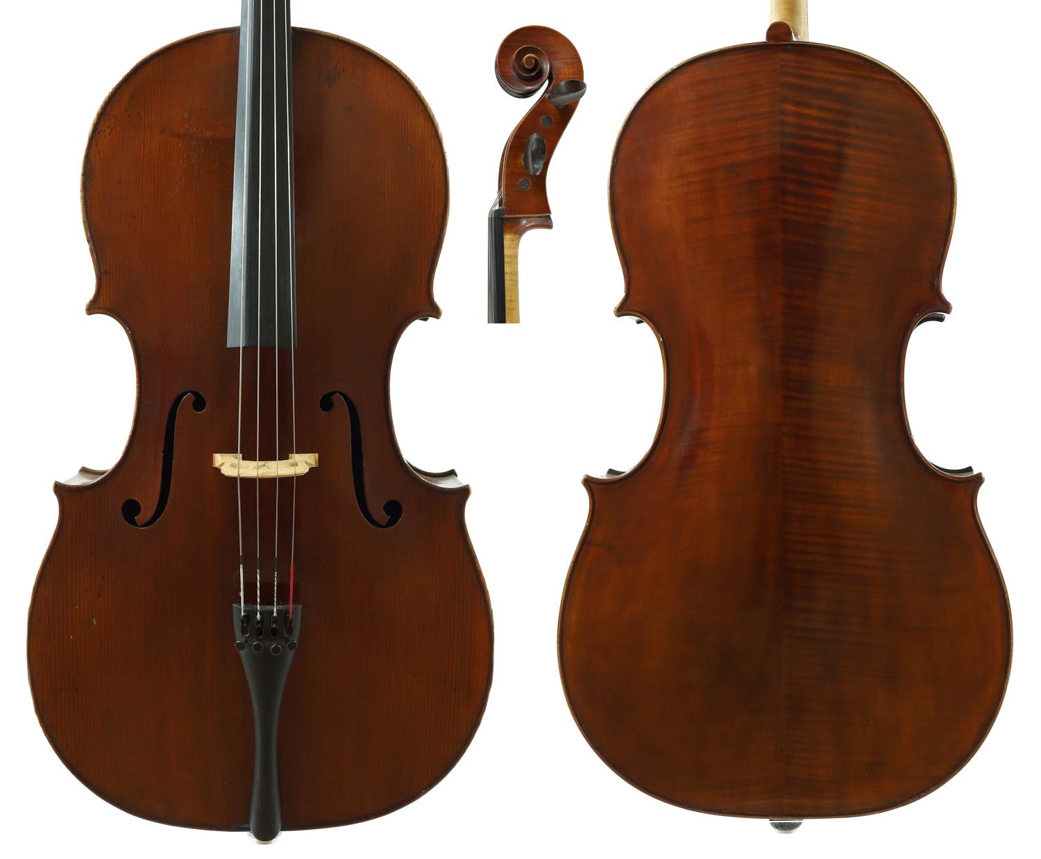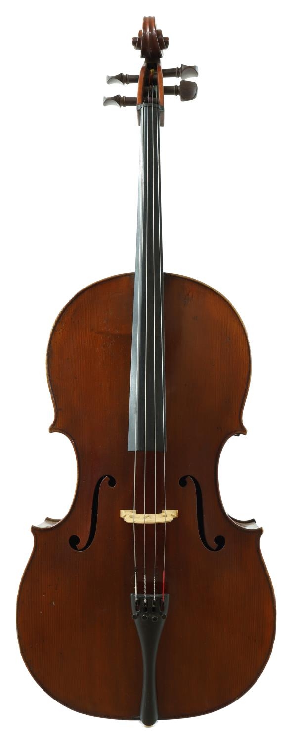Good French violoncello by and labelled Marc Laberte, Maitre Luthier, Mirecourt (Vosges), France, no. 1106; also labelled on the treble side Grand Prix, Paris 1931 Exposition Coloniale, the two piece back of medium curl with similar wood to the sides and head, the table of a medium width grain and the varnish of a reddish-brown colour on a golden ground, 29 1/2", 74.90cm