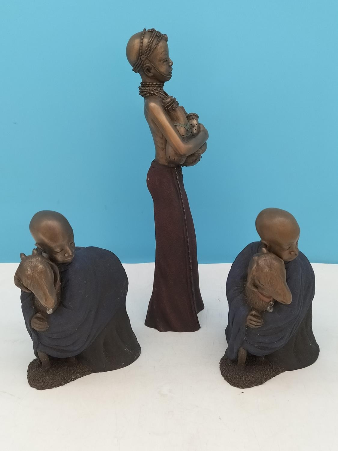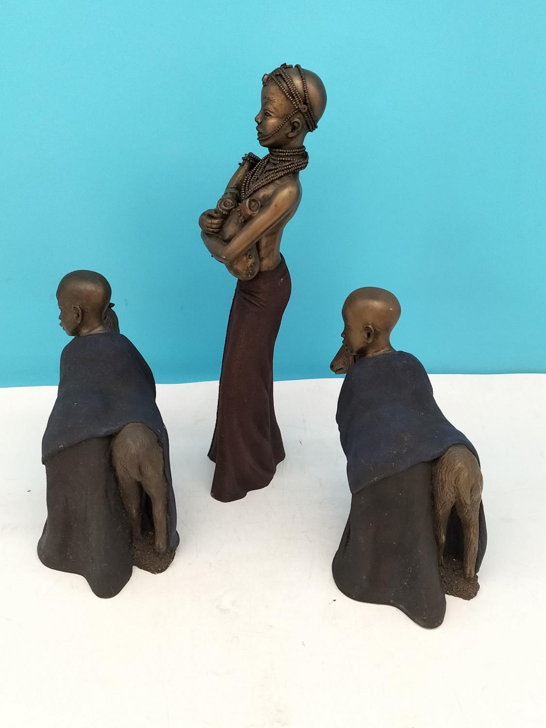 2003 Soul Journeys Maasai Figures (3) to include 12321 Marked Girl Holding 3 Calabashs to Base but Named 'Safiya' When Put into Production plus 2 x 12325 'Nasiir Little Shepherd'. Possibly Pre Production Pieces Also.
