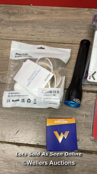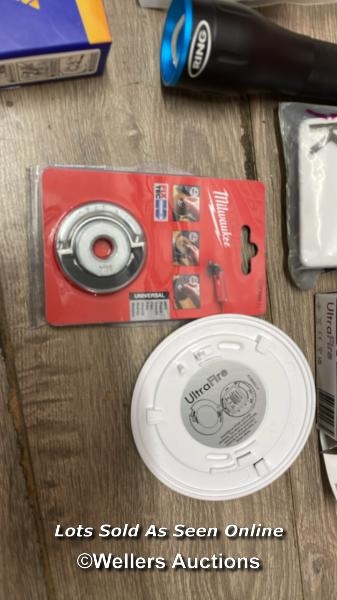 SELECTION OF MIXED HOME AND AUTO ITEMS WORTH OVER £125.00 - INCL: RRP: 24.78 - MUEYNIUK H7 HEADLIGHT BULB FOR CAR 26000LM 60W H7 LED HEADLIGHT BULB CONVERSION KIT 1:1 MINI SIZE SUPER BRIGHT 6500K WHITE 12V IP68 WATERPROOF PLUG AND PLAY, PACK OF 2 / RRP: 46.98 - RING AUTOMOTIVE RIT1060 ZOOM750 LED USB RECHARGEABLE INSPECTION TORCH & POWER BANK,BLACK/BLUE / RRP: 9.09 - ULTRAFIRE ULLS10 OPTICAL SMOKE ALARM WITH 10 YEAR SEALED LITHIUM BATTERY | 10 YEAR WARRANTY | ALARM TEST & SILENCE BUTTON | SUITABLE FOR HALLWAYS, LANDINGS, LIVING ROOMS & BEDROOMS / RRP: 20.24 - KNIGHTSBRIDGE SF8900MW SCREWLESS DUAL VOLTAGE SHAVER SOCKET IN MATT WHITE, 14.85 CM*0.48 CM*8.75 CM / RRP: 14.48 - PAUTIX MOTION SENSOR USB COB LED STRIP 3M WARM WHITE 3000K, 5V MOVEMENT ACTIVATED AUTO ON/OFF LED TAPE, DIMMABLE 960LEDS BRIGHT LIGHTS, PIR SENSING LED STRIPS FOR STAIRS, UNDER BED, MIRROR, CABINET / RRP: 10.5 - MILWAUKEE 4932352473 FIXTEC NUT, MULTI /
