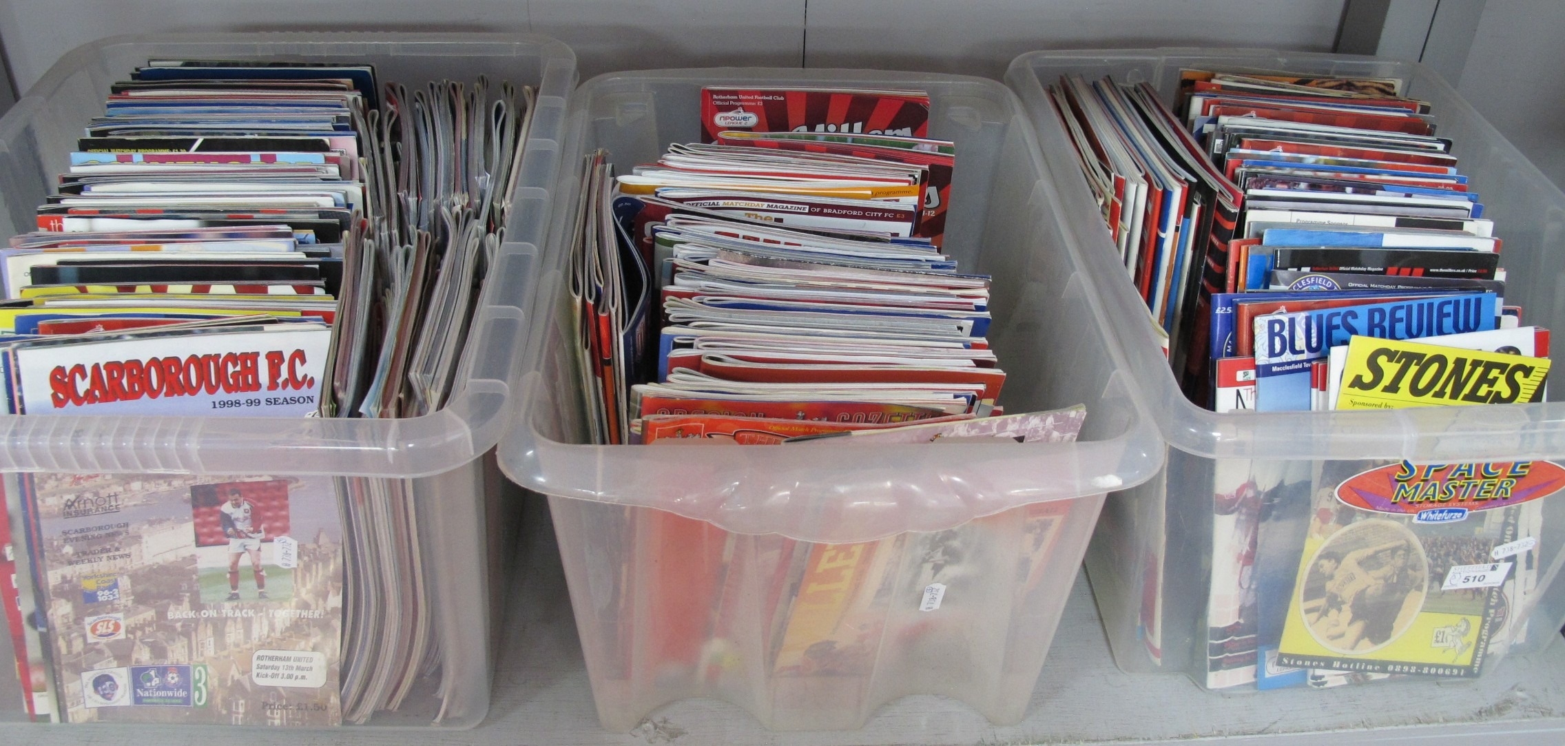 Rotherham United Home and Away Programmes 1990 and later, large quantity:- Three Boxes.