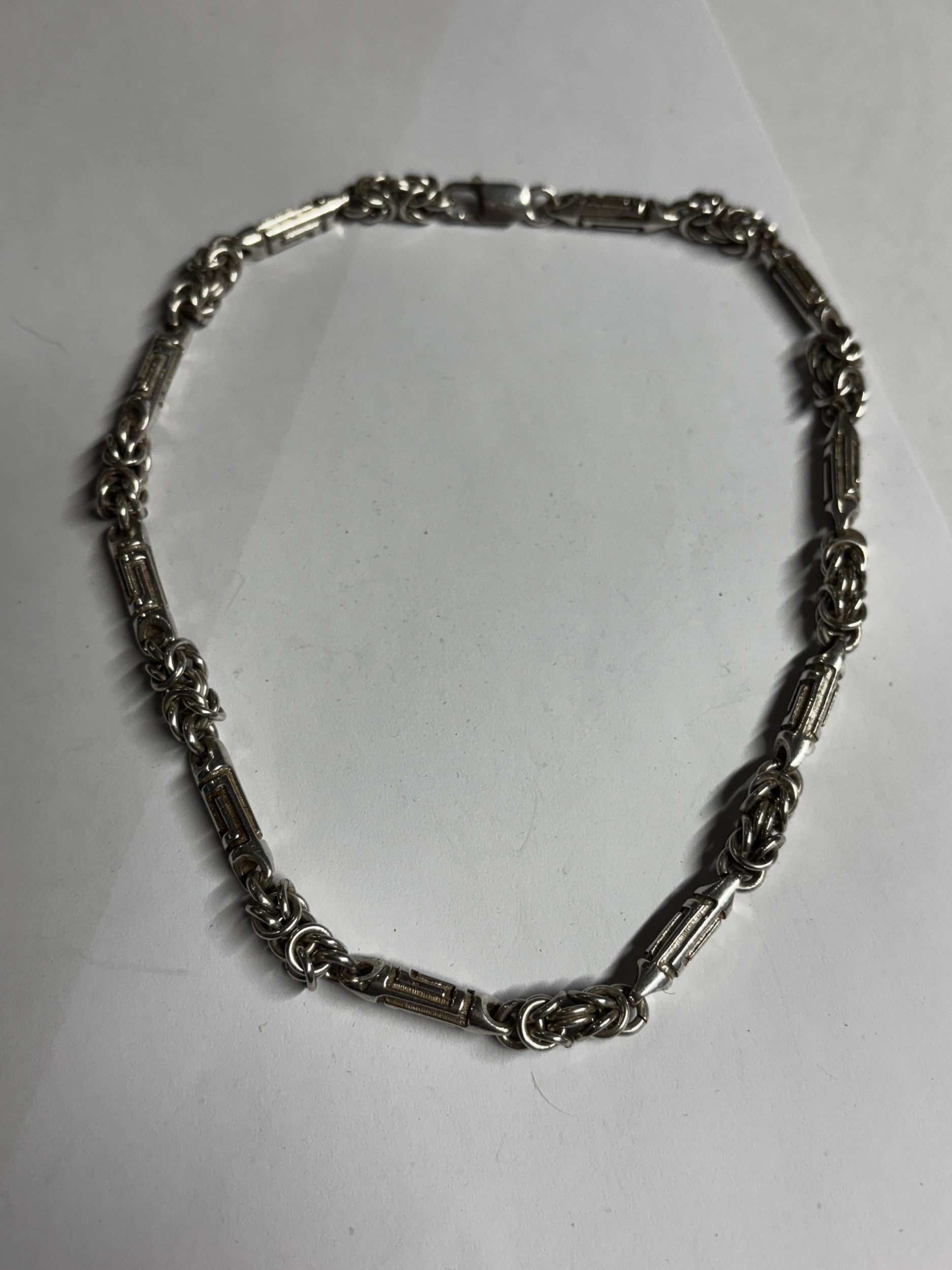 A HEAVY SILVER NECKLACE LENGTH 16 INCHES GROSS WEIGHT 58.9 GRAMS