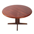 WITHDRAWN LOT A Danish rosewood extending dining table, by Gudme Mobilfabrik, circa 1970s; with circular top and twin leaf inserts on a cruciform base; 70cm high, 123cm diameter, each leaf adding 49cm to the length Note: Rosewood CITES sale licence applied for