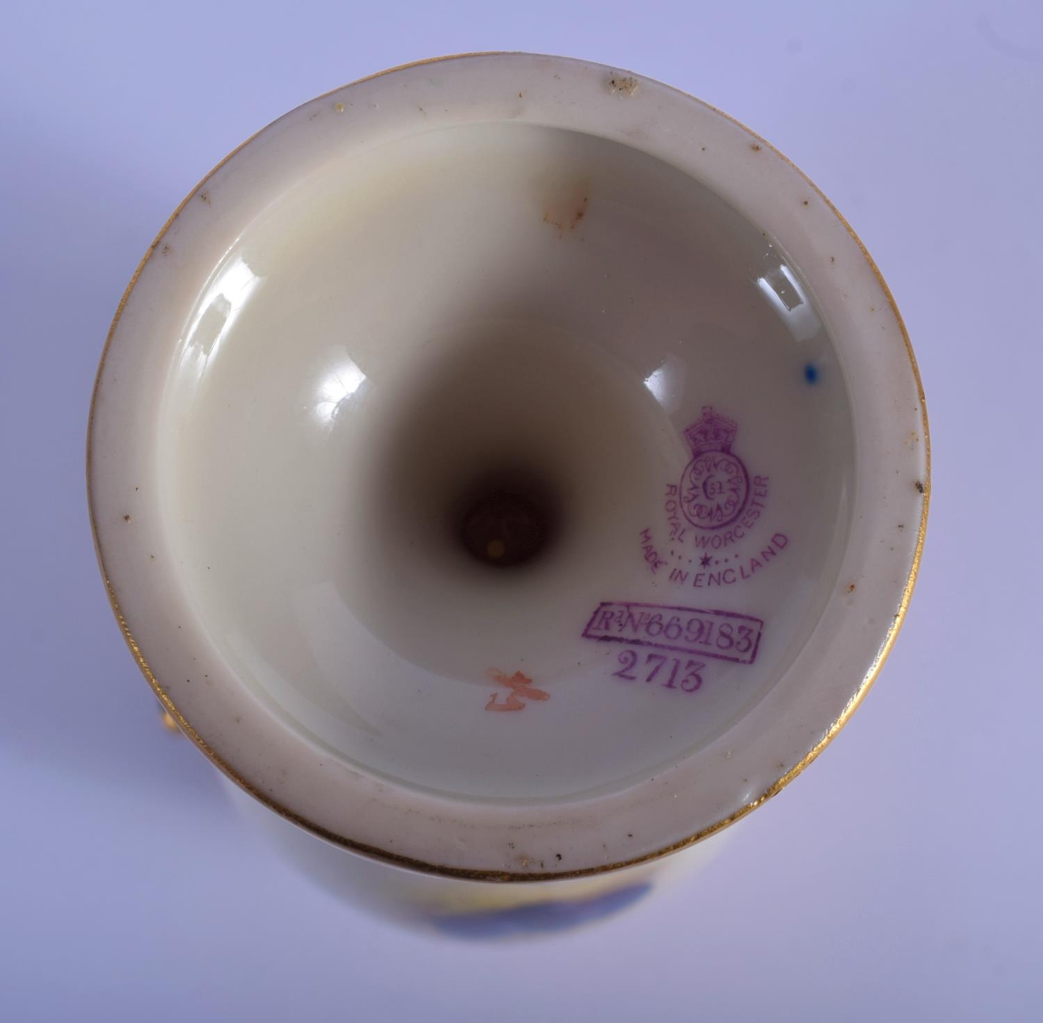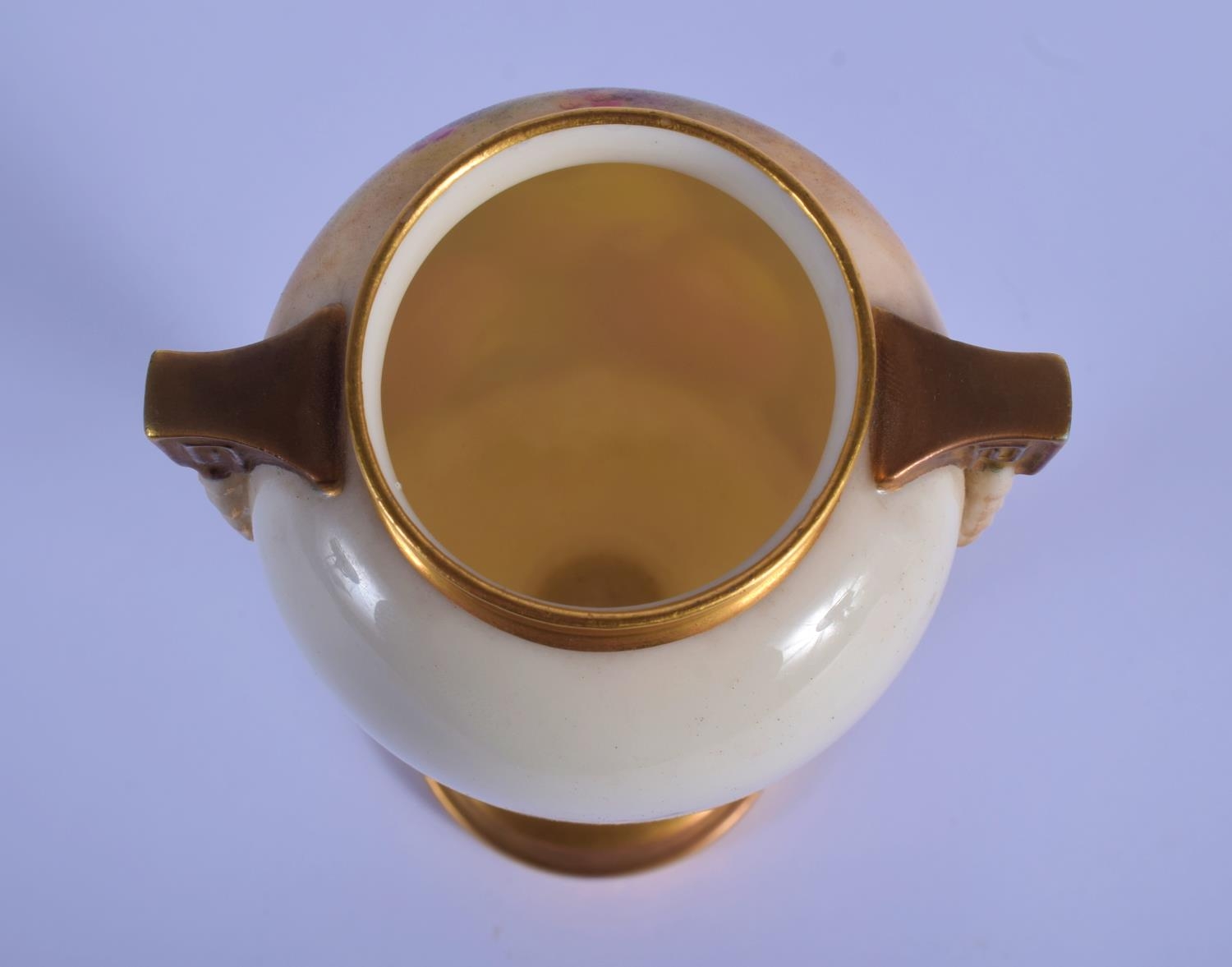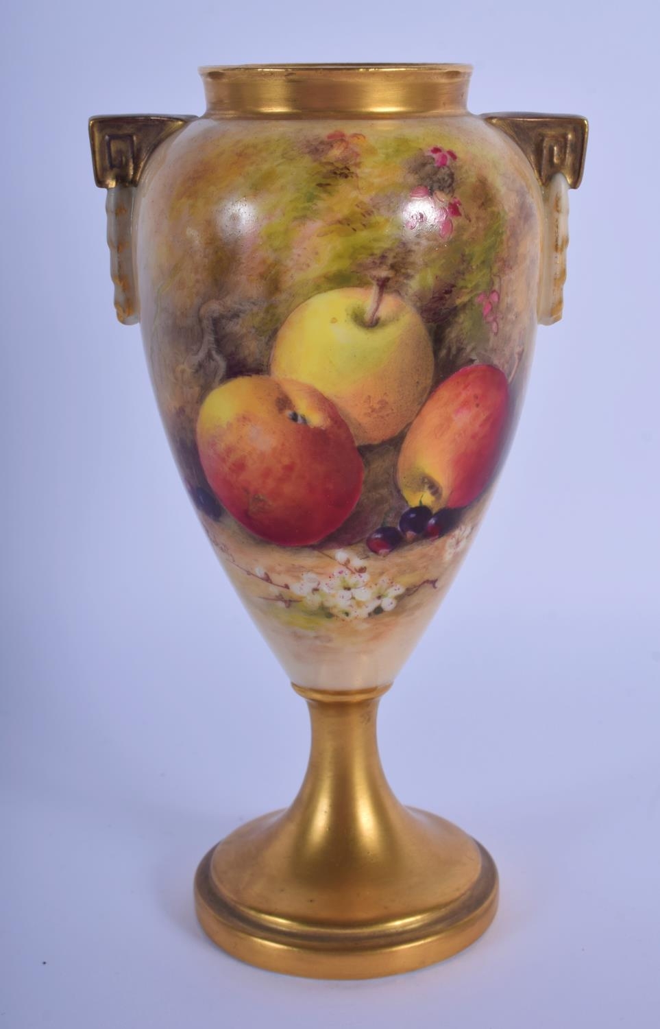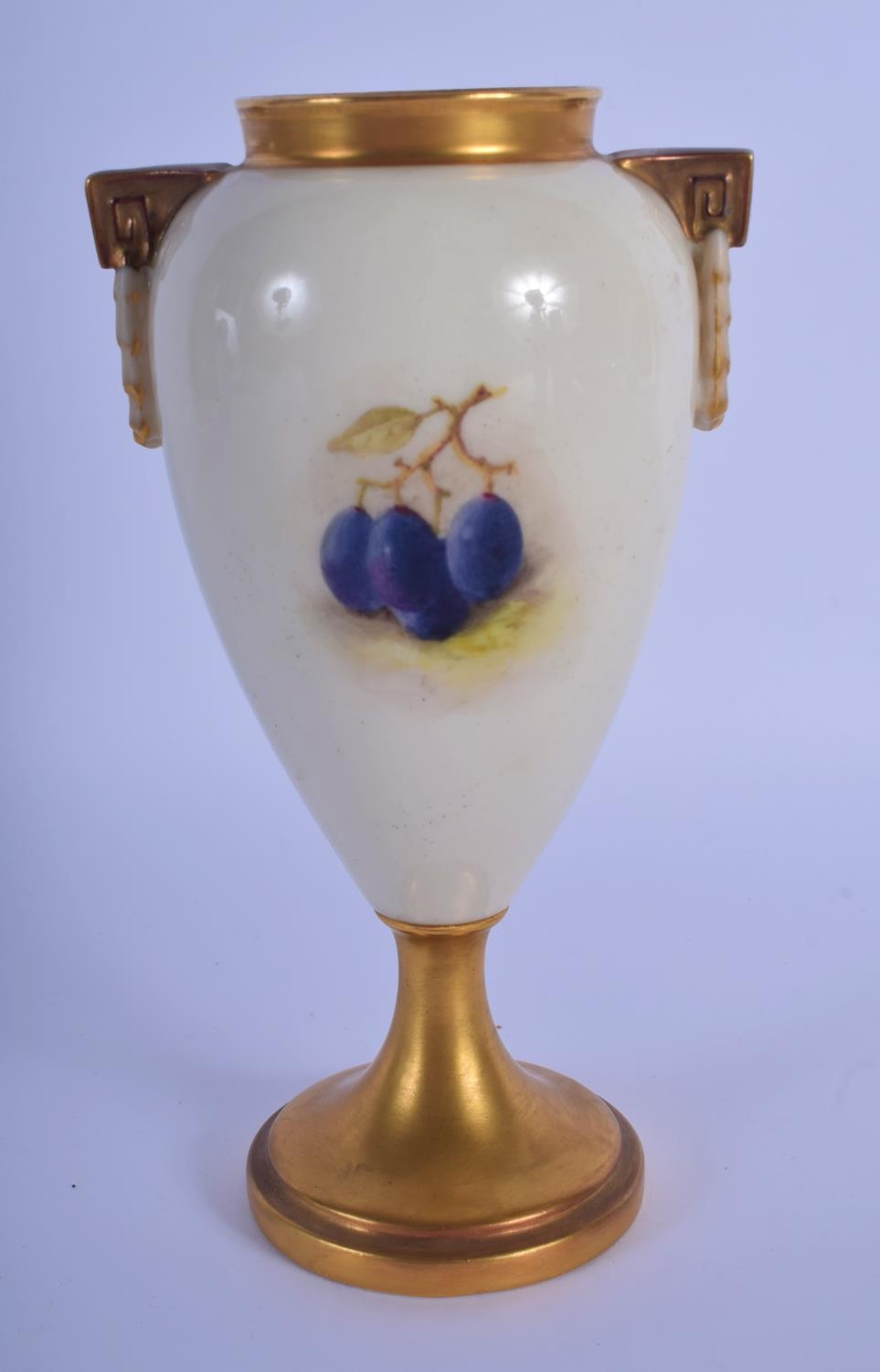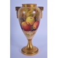 A ROYAL WORCESTER FRUIT PAINTED PORCELAIN VASE by Ricketts. 16 cm high.