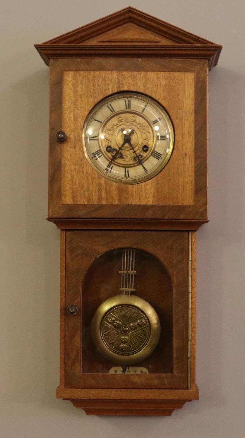 A Oak cased pendulum wall clock. (68cm height, 23cm width)