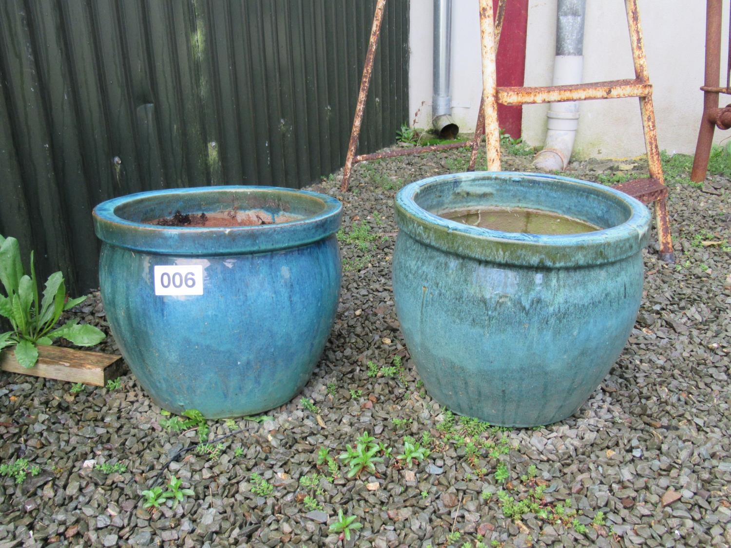 2 Glazed earthenware garden planters. H:30cm