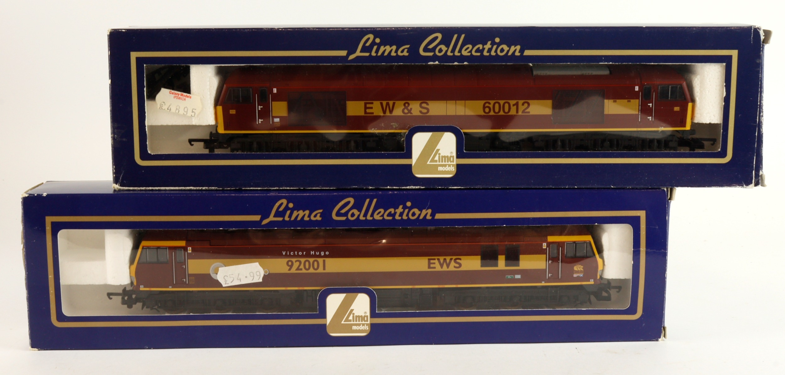 Lima. Two boxed Lima OO gauge locomotives, comprising Class 92 92001 Electric 'EWS' Victor Hugo (L204672); Class 60 60012 Electric 'EW&S' (L204755)