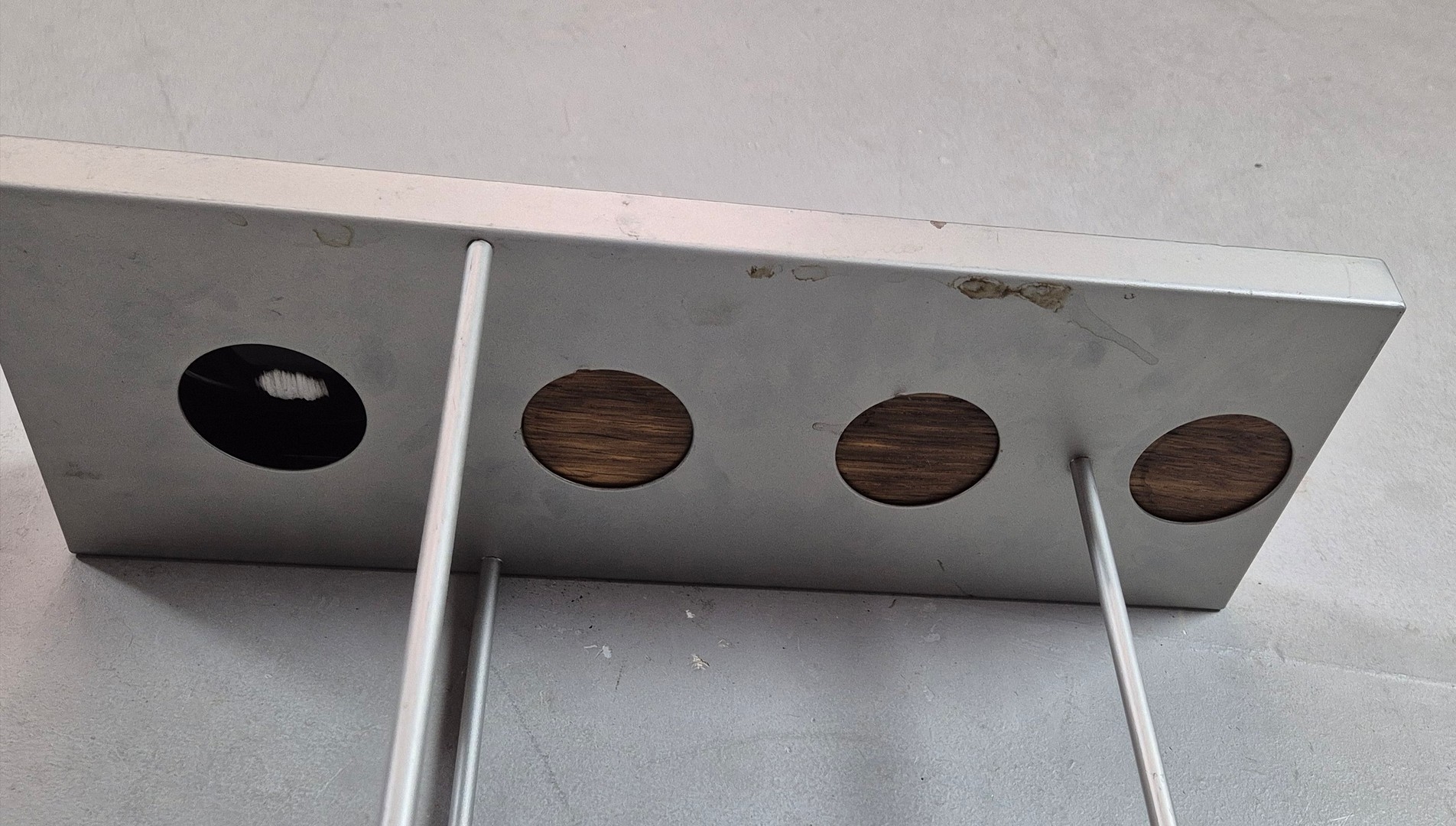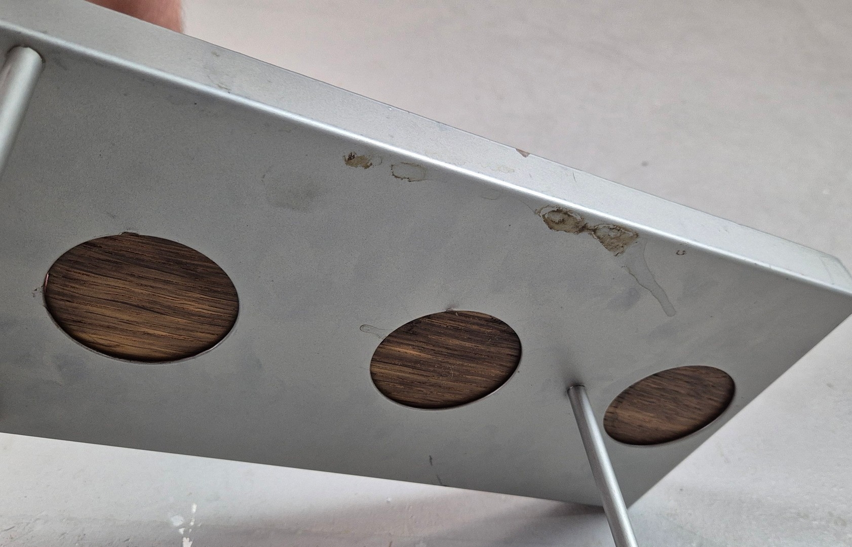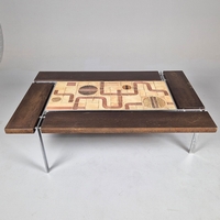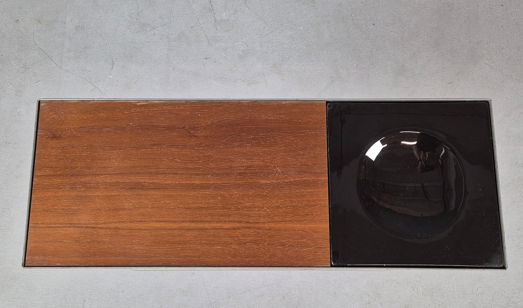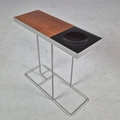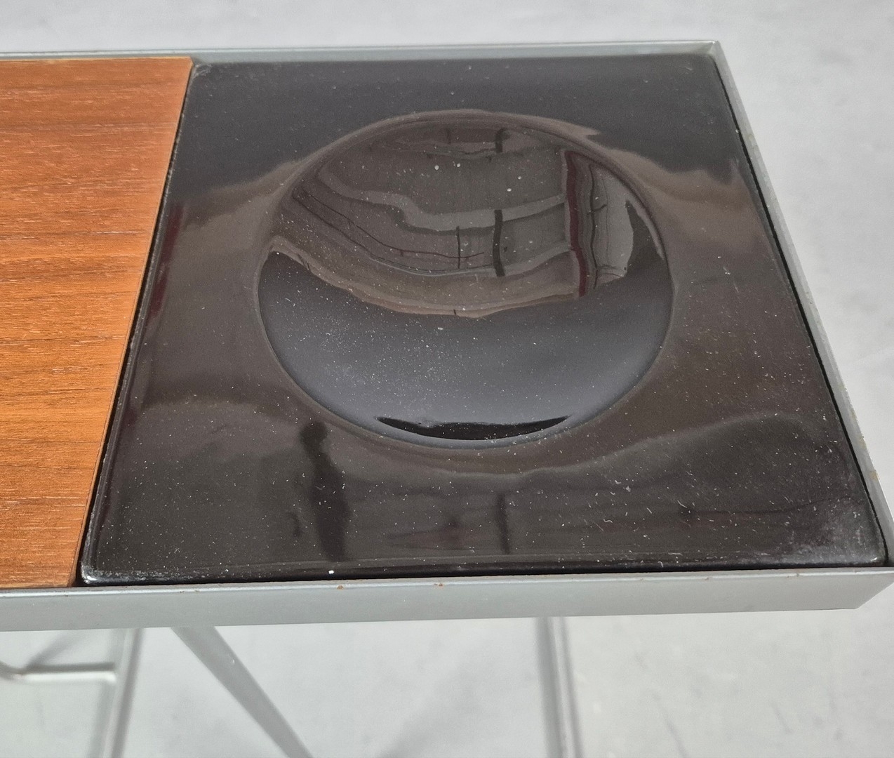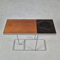 1990s ROBIN DAY SIDE TABLE FOR HABITAT WITH WOOD AND BLACK CERAMIC TOP. 45cm H x 48cm W x 18cm D.