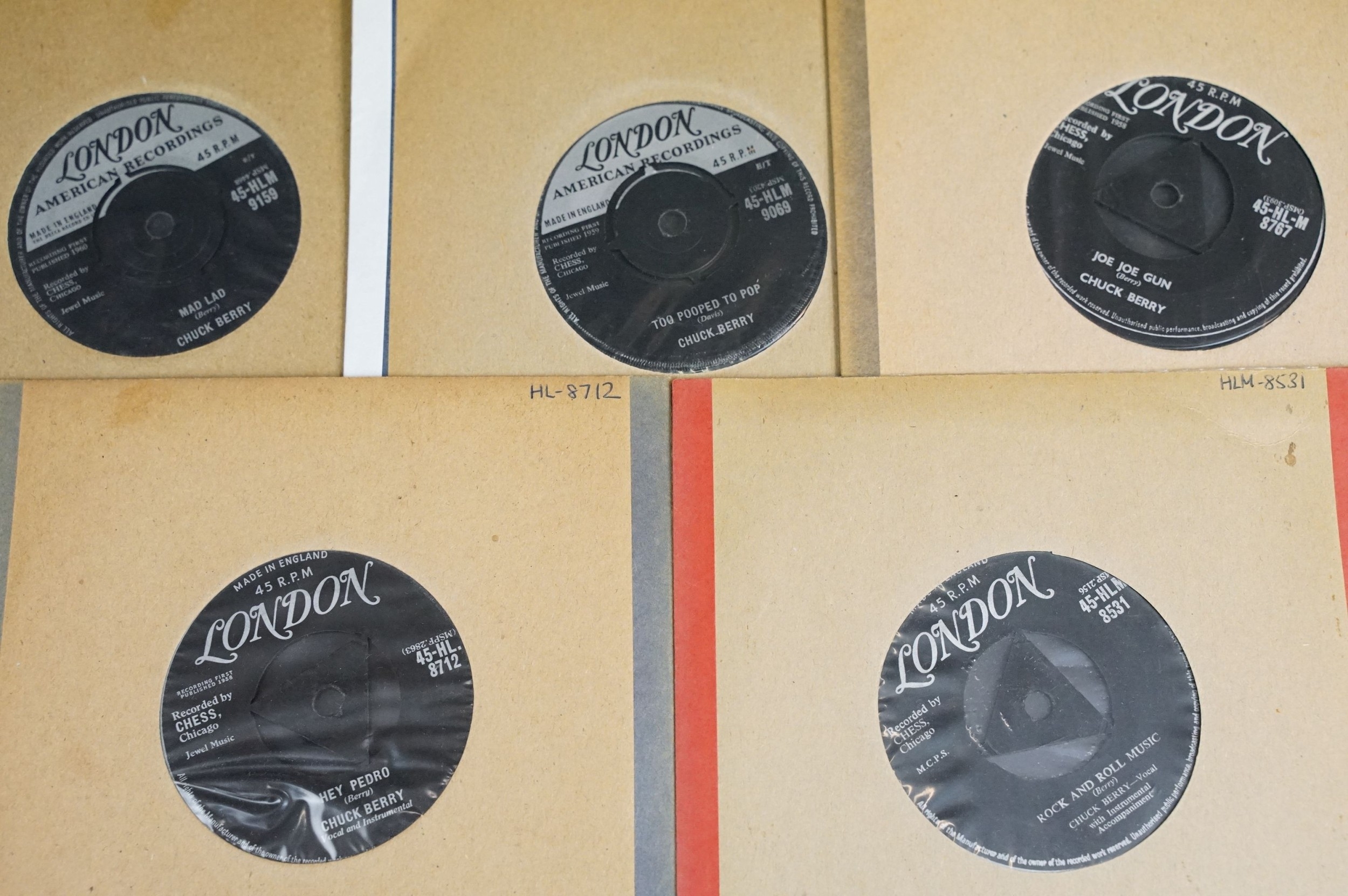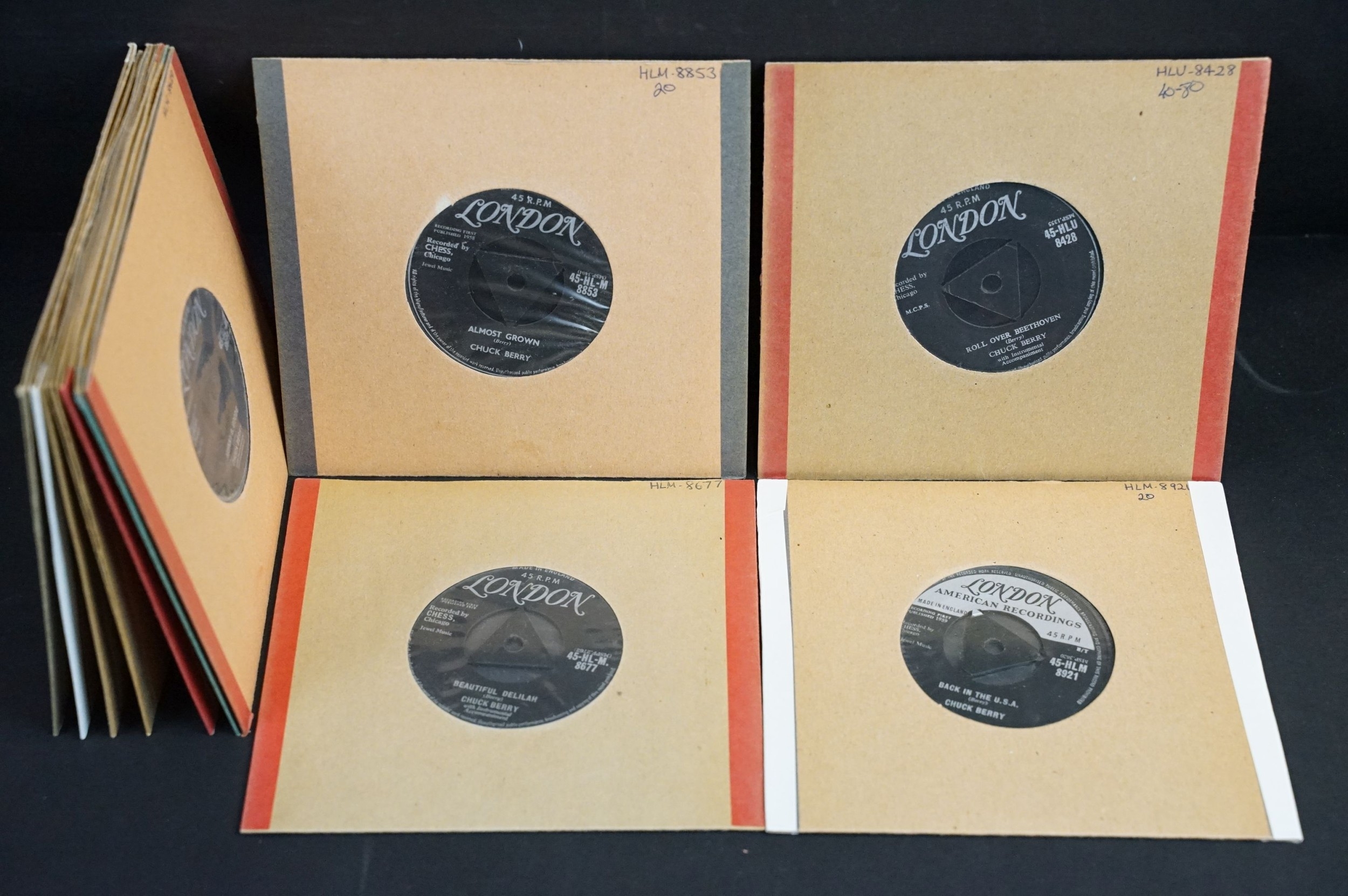 Vinyl - Rock ’N’ Roll - 11 Chuck Berry UK pressing 7” singles spanning his time on London Records including 9 Tri-centre issues to inbclude: 45-HLU 8428, 45-HL-M 8853, 45-HLM 8921. Condition VG+ overall