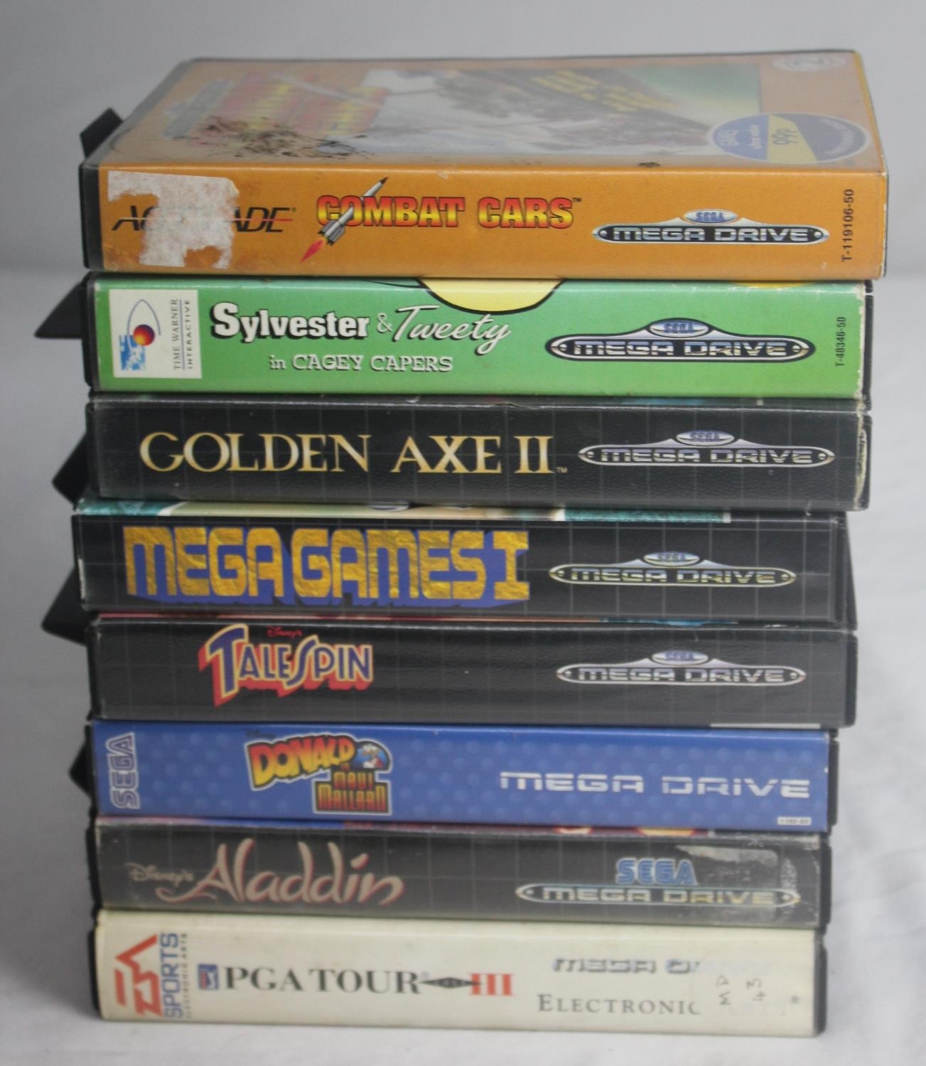 QUANTITY OF MEGADRIVE GAMES INCLUDING COMBAT CARS (WE HAVE MANUALS FOR THE FOLLOWING GAMES: GOLD AXE 11, MEGA GAMES 1, DONALD IN MAUI MALLARD, ALADDIN, PGA TOUR GOLF 111)