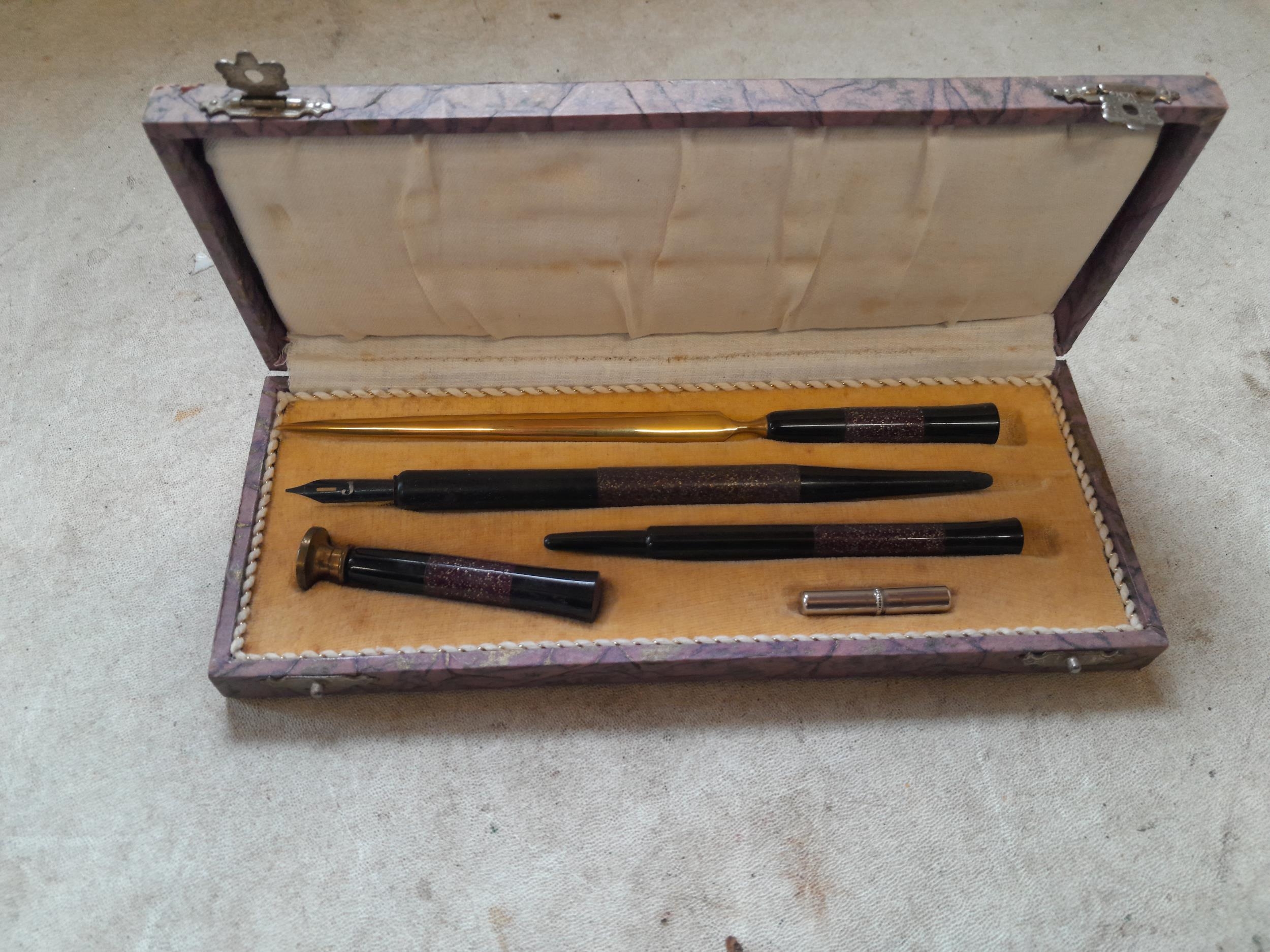 Early 20th century dip pen desk set in presentation box of issue