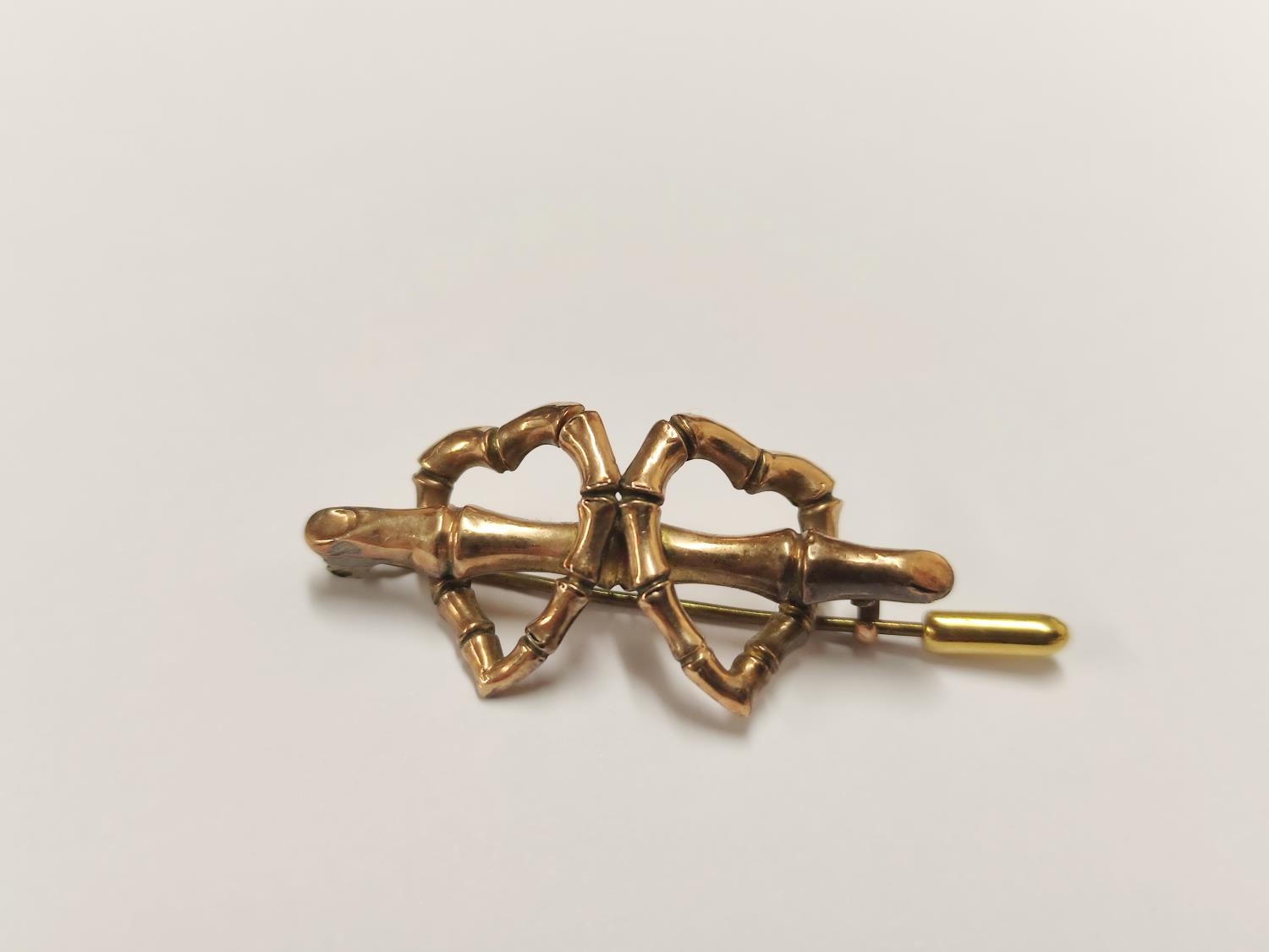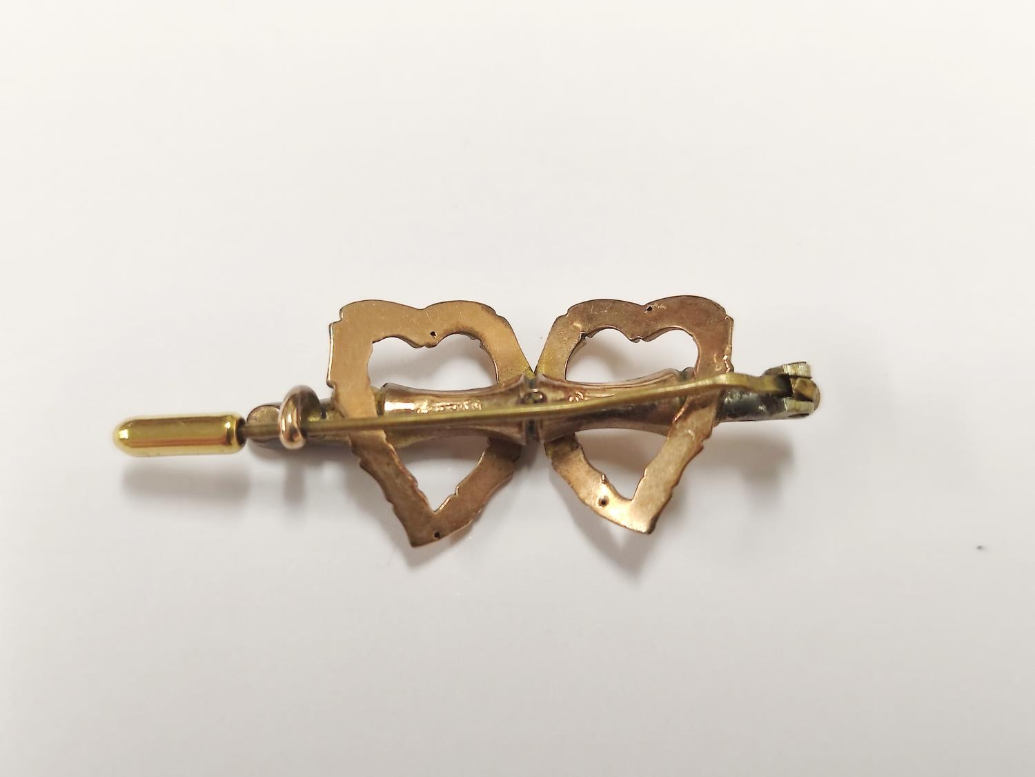 9ct gold heart-shaped bar brooch, 2.3g gross.