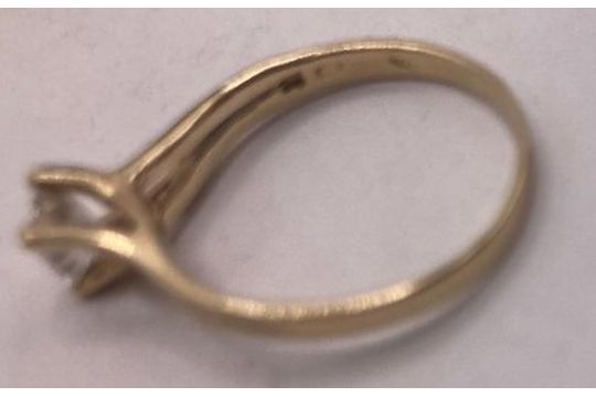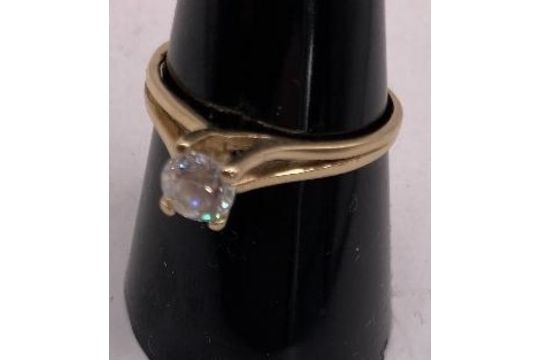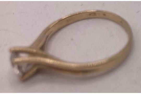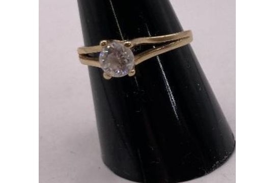 Jewellery : 14ct Gold single stone ring, marked 585, Size P, attractive single white stone, shame it is not a diamond ! total weight 2.16g