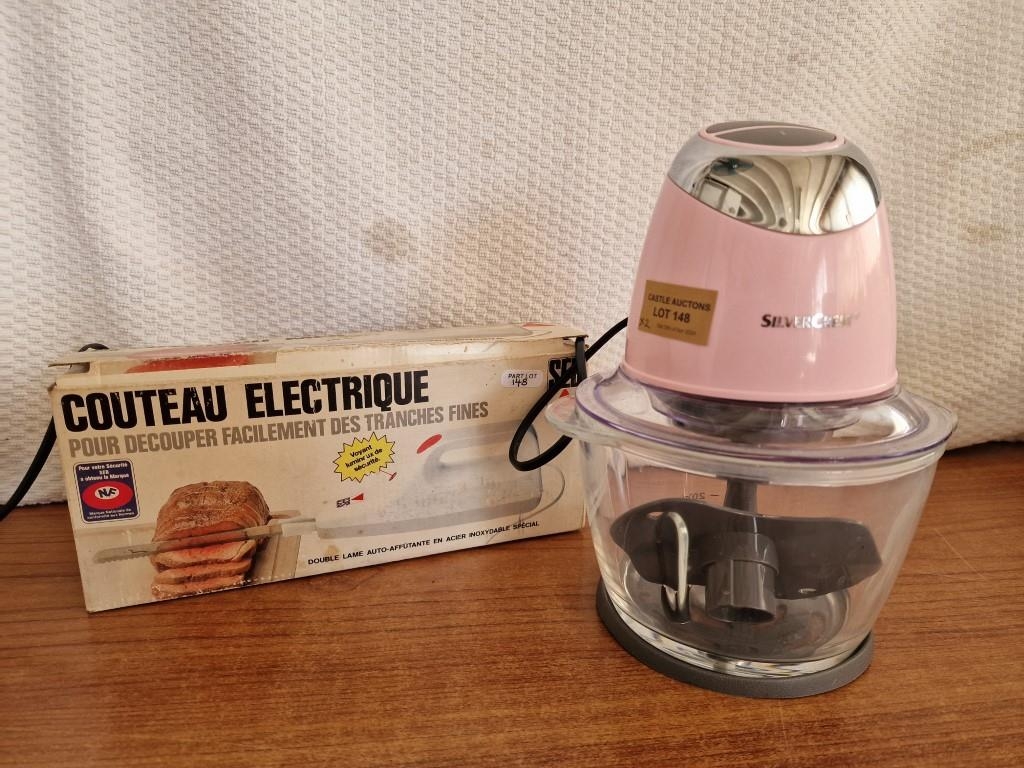 Silver Crest Mini Chopper (Model: SMZC 500 C2), Pink Colour, Looks Unused, * Basic Test & Working *, Together with Electric Carving Knife with Box, (2)