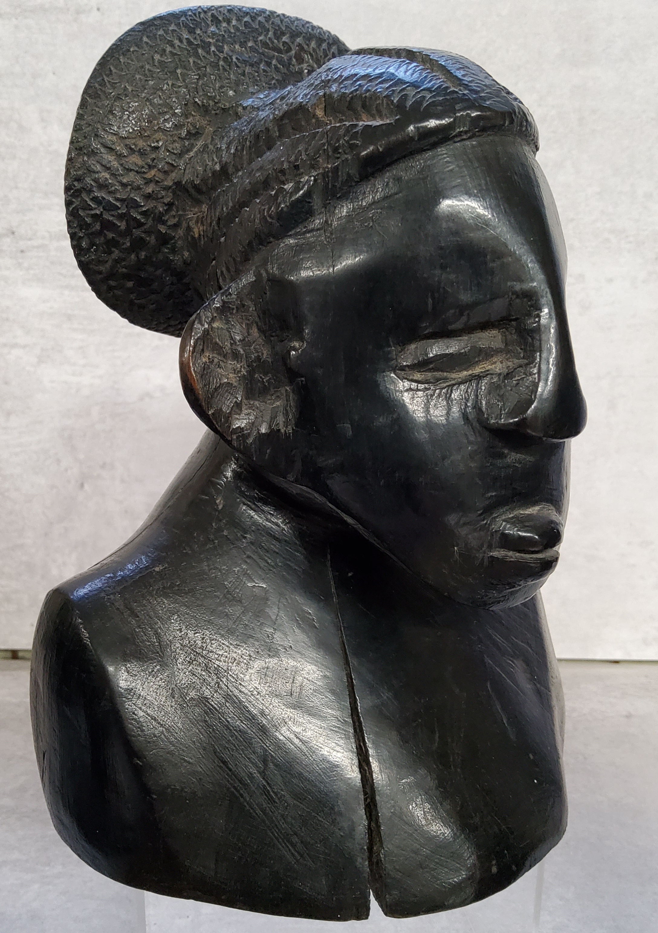 Tribal Art - a carved 19th century African ebony bust of an elder; other carved tribal busts.