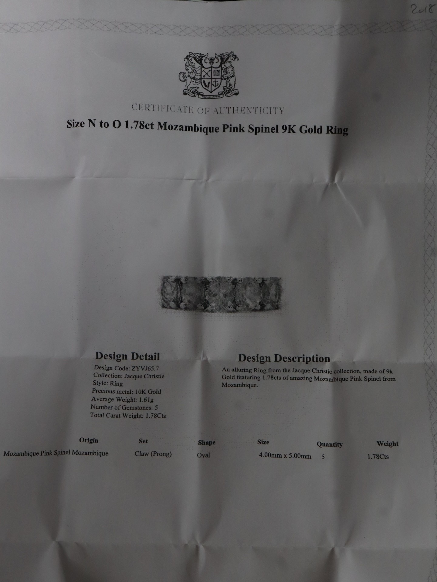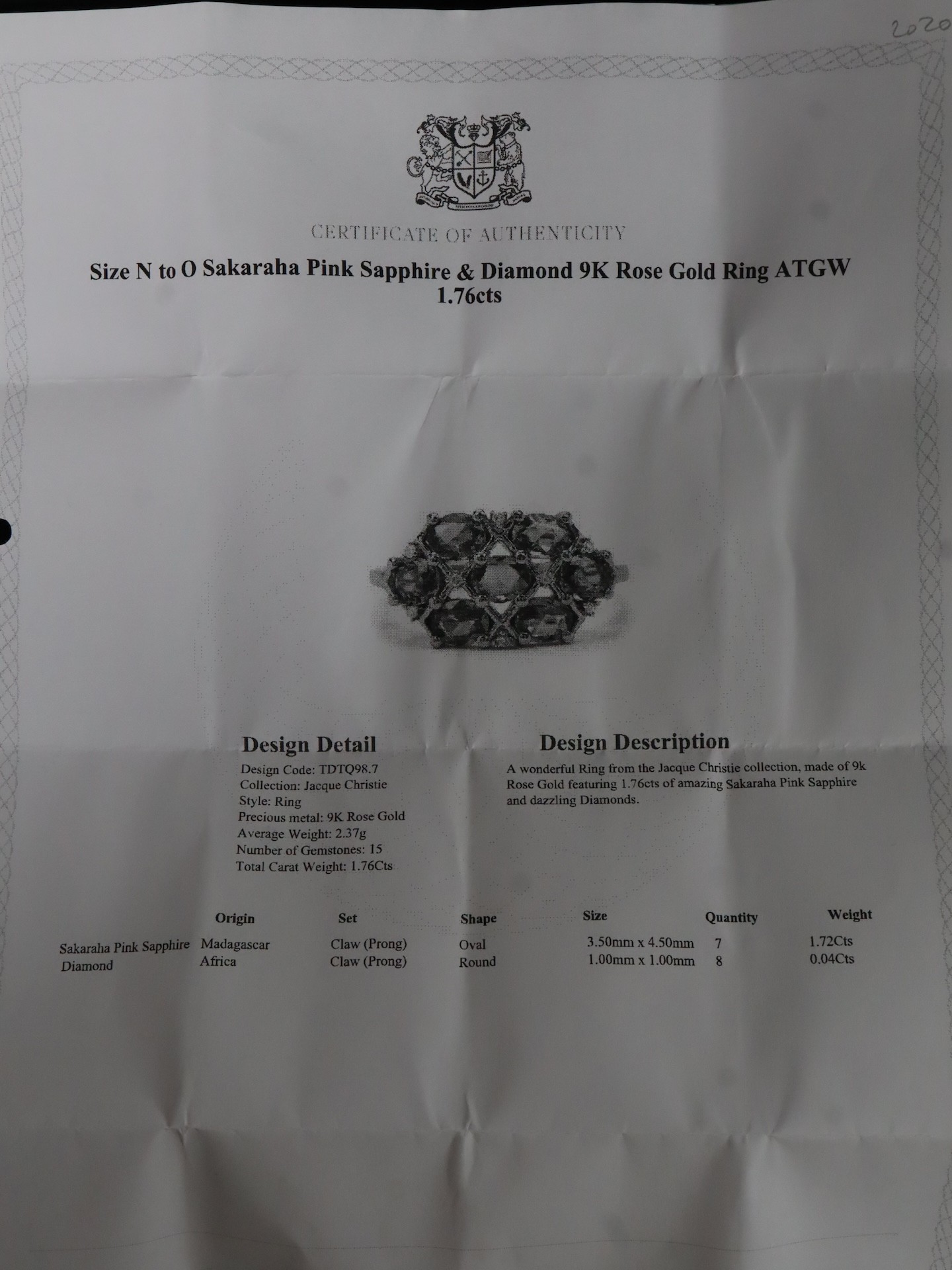 1.78ct Mozambique Pink Spinel 9K Gold Ring, Sakaraha Pink Sapphire & Diamond 9K Rose Gold Ring Atgw 1.76cts Size N to O -4.5g