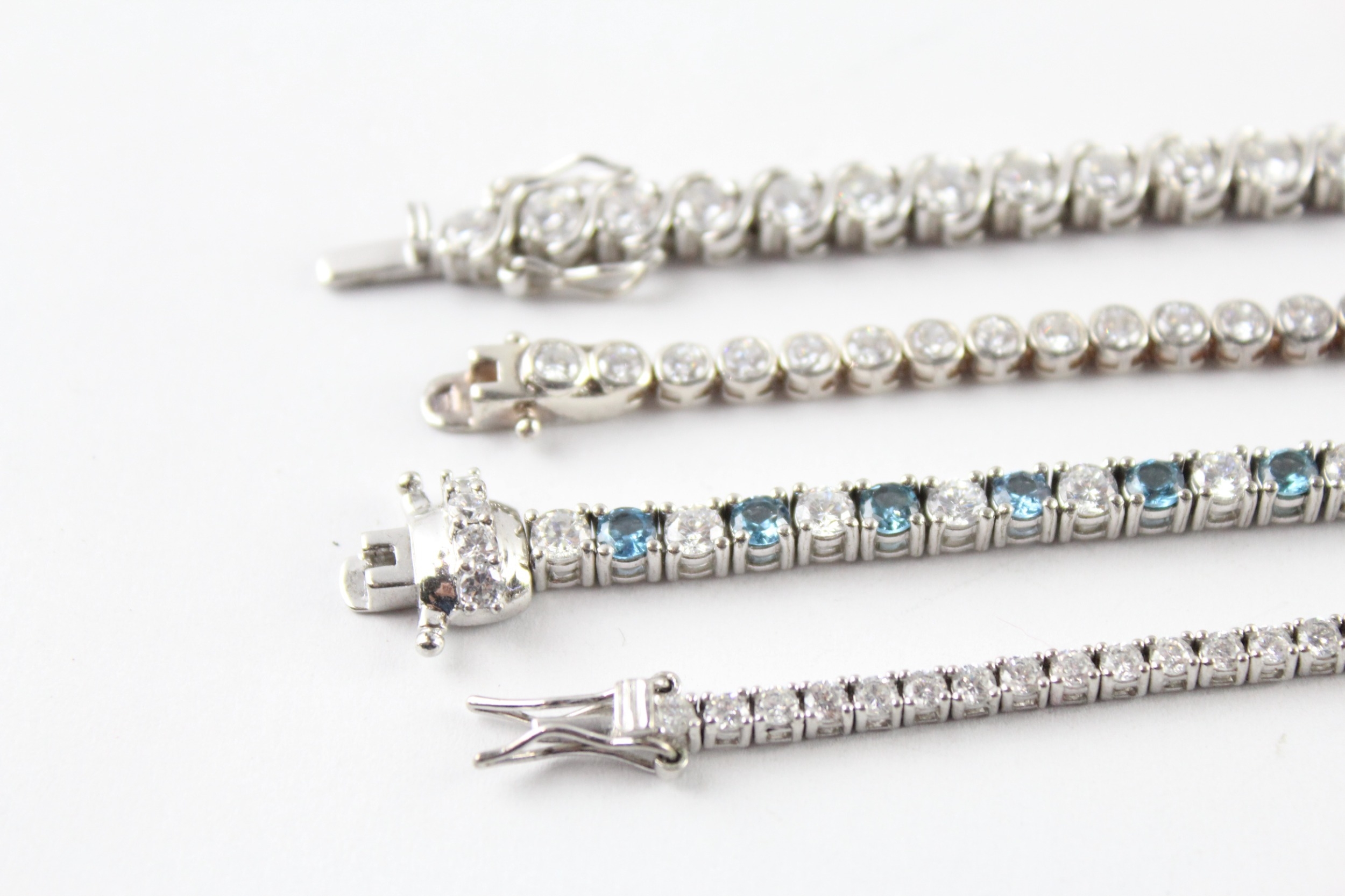Collection of Sterling Silver Tennis Bracelets inc. Gemstone, Stone Set x 4 51g