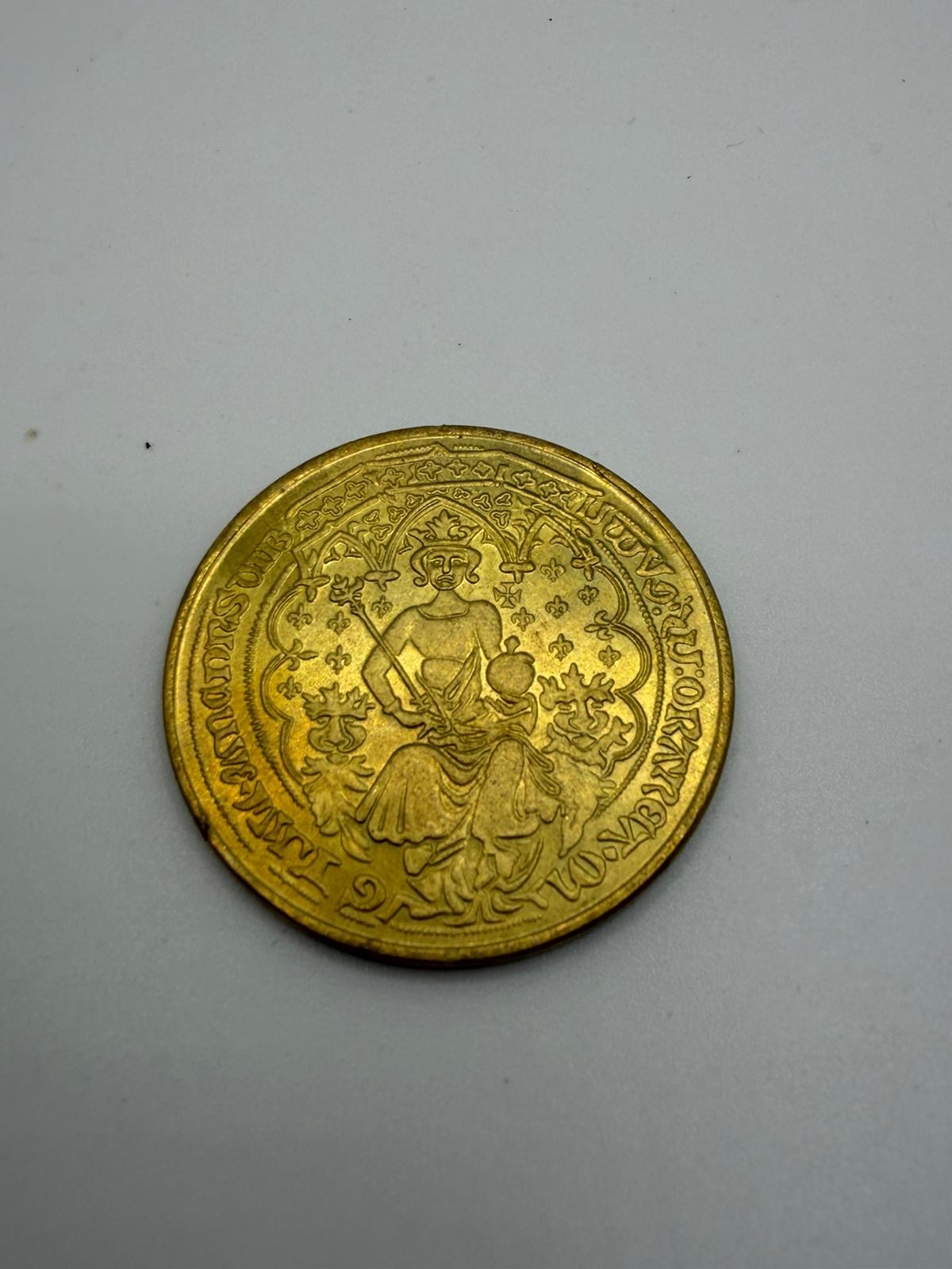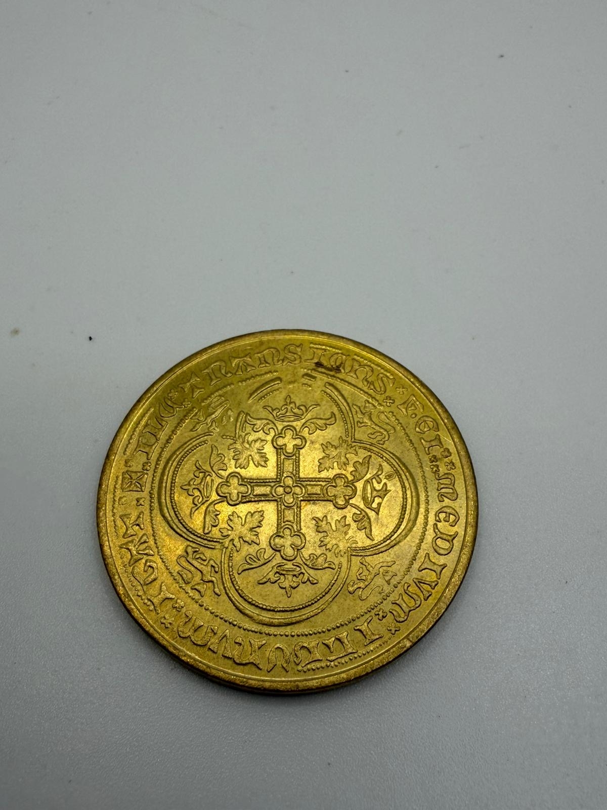 Replica souvenir coin. A reproduction of an Edward III Double Leopard gold coin from 1344
