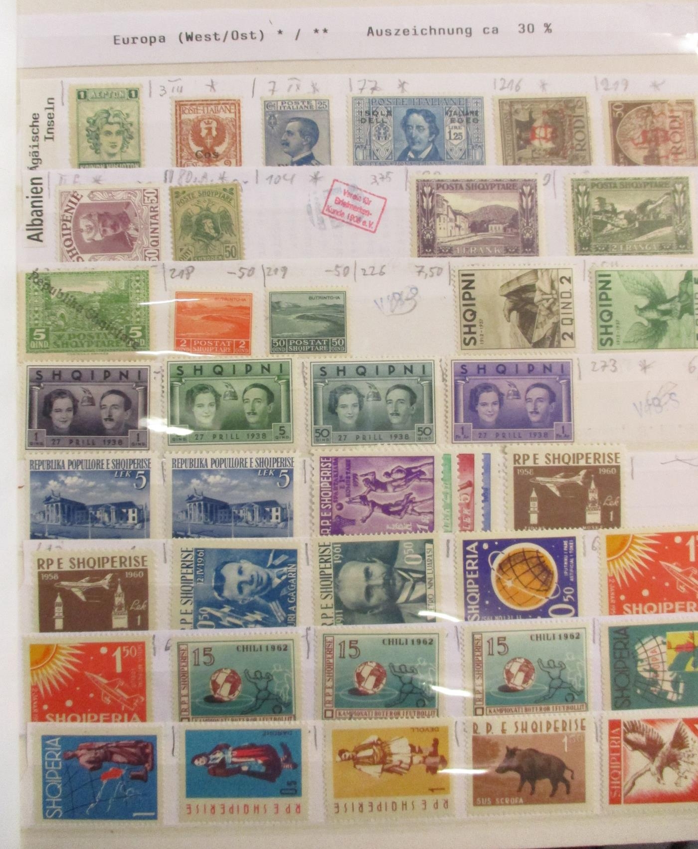 European coln in 32 stockbooks/vols, many being well-filled and layered with issues, largely early to modern, incl Austria with 1951 reconstruction fund set UM, 1950-53 Air 1s & 10s UM & 10s FU, and 1955 Re-establishment set UM with further dupl U, Belgium with 1925 set to 10f UM, Bulgaria, Croatia, Czech, Finland, France with much dupl U, Hungary, Italy, Liechtenstein, Luxembourg, Monaco, Norway, Netherlands, Poland with 1962 F.I.P day sheet of four UM, 1965 Olympics sheets UM with further MS’s UM & FU to 1990, Romania, Russia, San Marino incl 1961 1000l UM, Sweden early to modern U, Switzerland 1891-2001 incl small qty bklts & MS’s, Turkey and Yugoslavia. Viewing recommended. (5B)