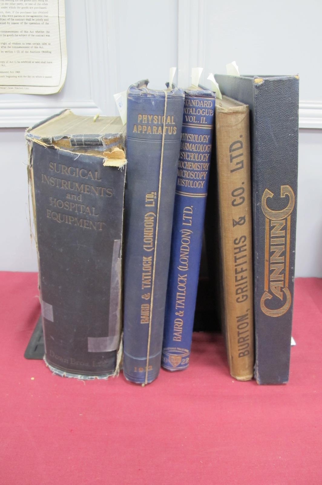 W. Canning & Co Ltd Catalogue (1930), Burton Griffiths Co Ltd Engineers Small Tools catalogue, two volumes Baird & Tatlock (London) Physical Apparatus catalogue, Down Bros Ltd catalogue (Surgical Instruments and Appliances. (5)