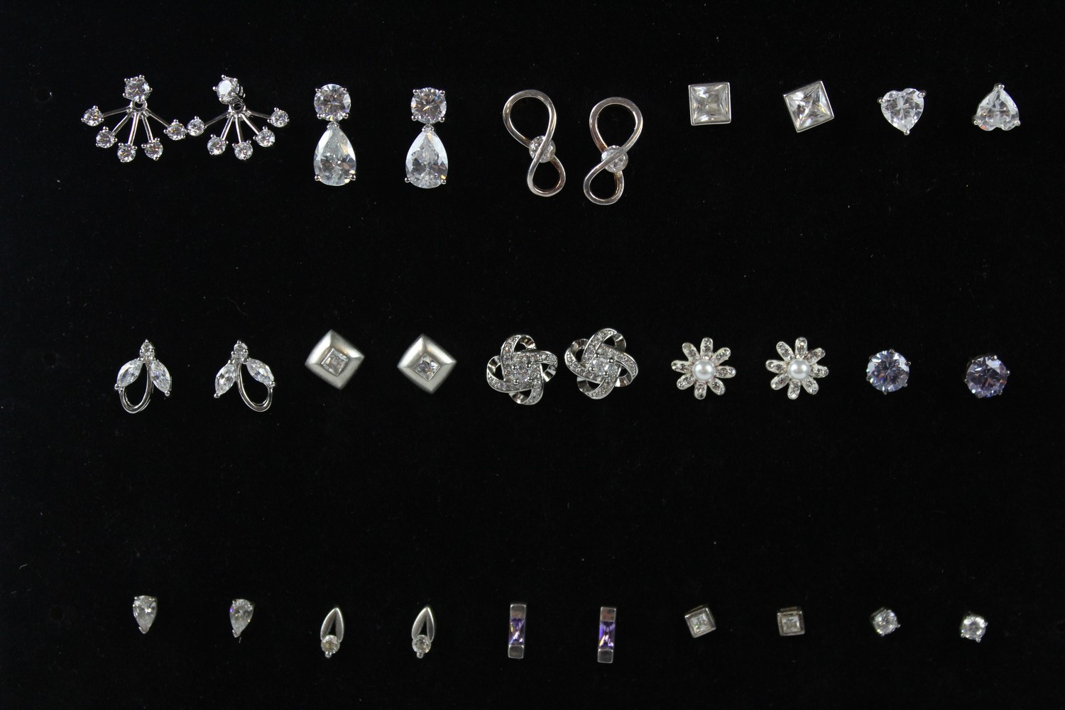 15 x .925 Sterling Silver EARRINGS inc. CZ, Studs, Statement (32g)