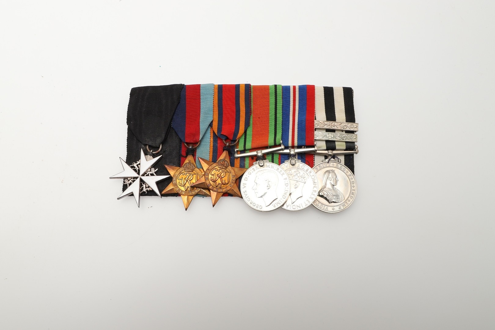 A SECOND WORLD WAR ORDER OF ST. JOHN GROUP OF SIX AND SIMILAR PAIR TO A FAMILY MEMBER. A Second World War group of six comprising Order of St John, 1939-45 and Burma Stars, Defence and War medal and Service Medal with two additional clasps named to Area/Surg A. Harbinson. Mounted court style as worn and a similar neck badge with ribbon. A pair comprising Order of St John Service medal and Metropolitan Police 1911 Cornation Medal named to 3750C/Surg J.S. Harbinson Accrington CPS No.4 Dst . Mounted as worn with a selection of ribbons, Dental Corps buttons and other items.