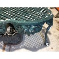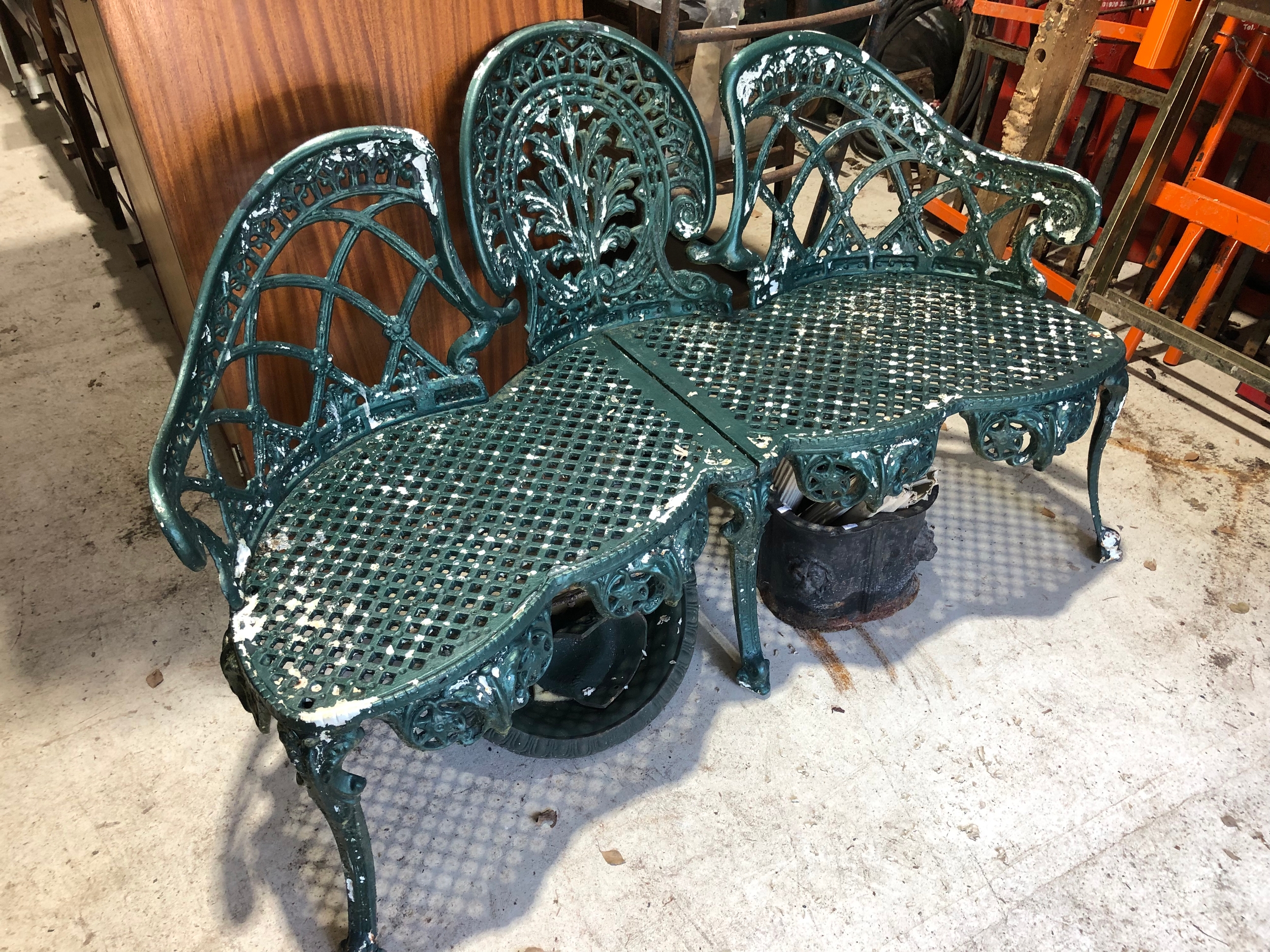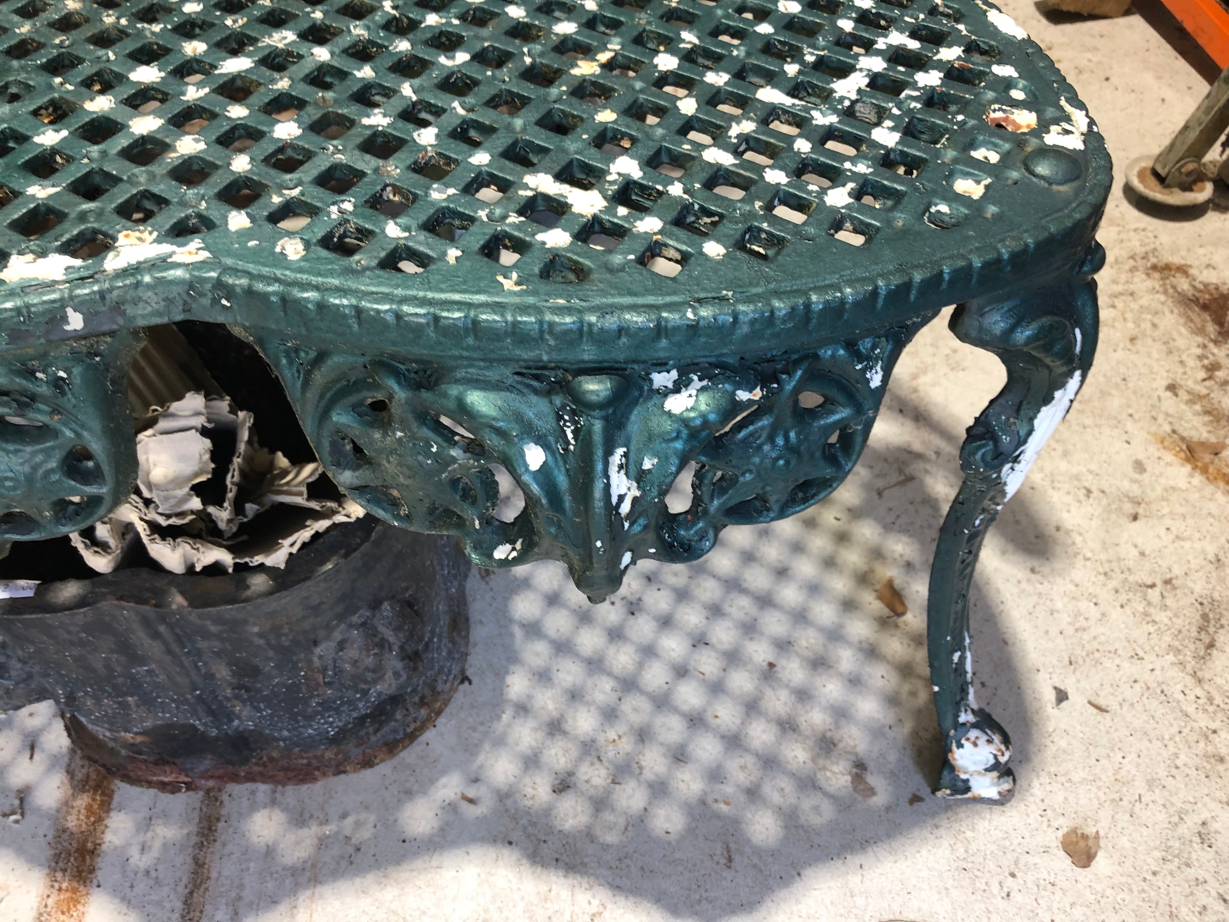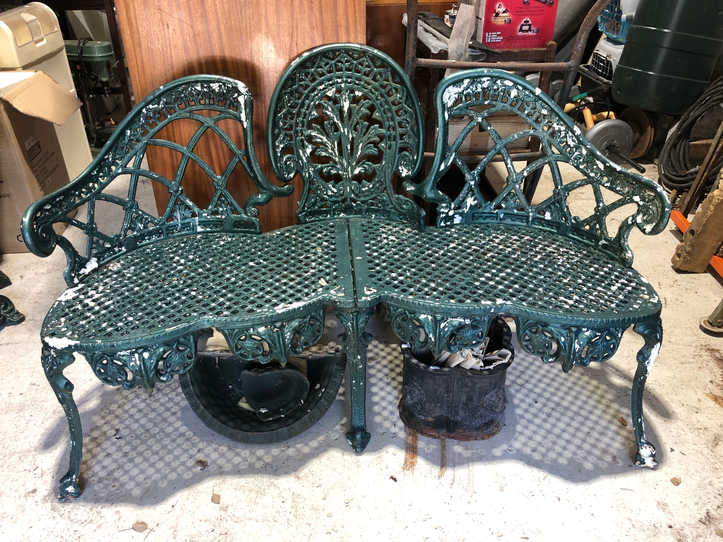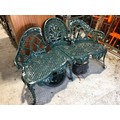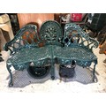 Painted metal garden love seat.