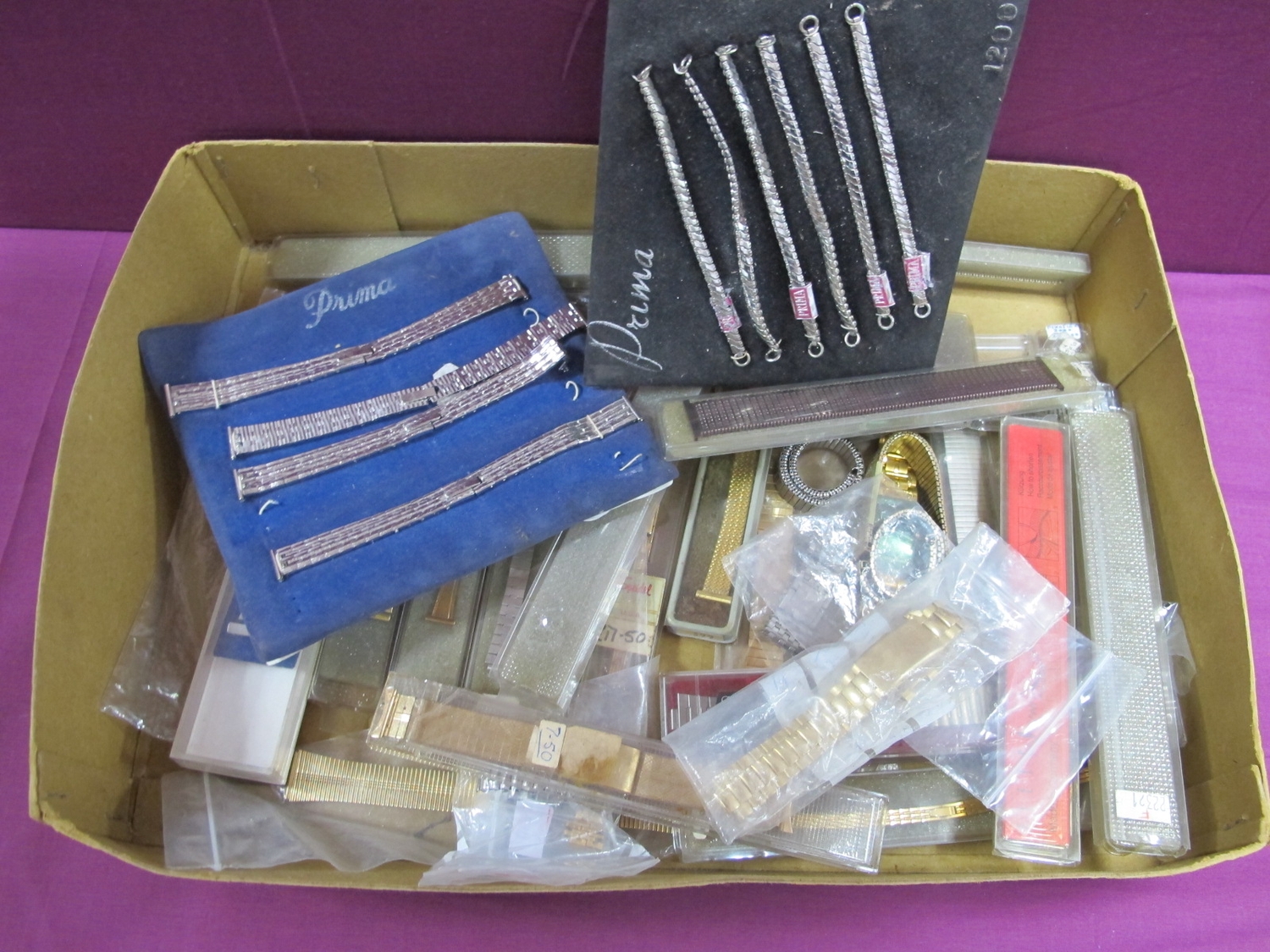 Vintage "Prima" Ladies Wristwatch Bracelets, on original display cards; together with a quantity of assorted ladies and gent's wristwatch bracelets, expanding examples, etc.