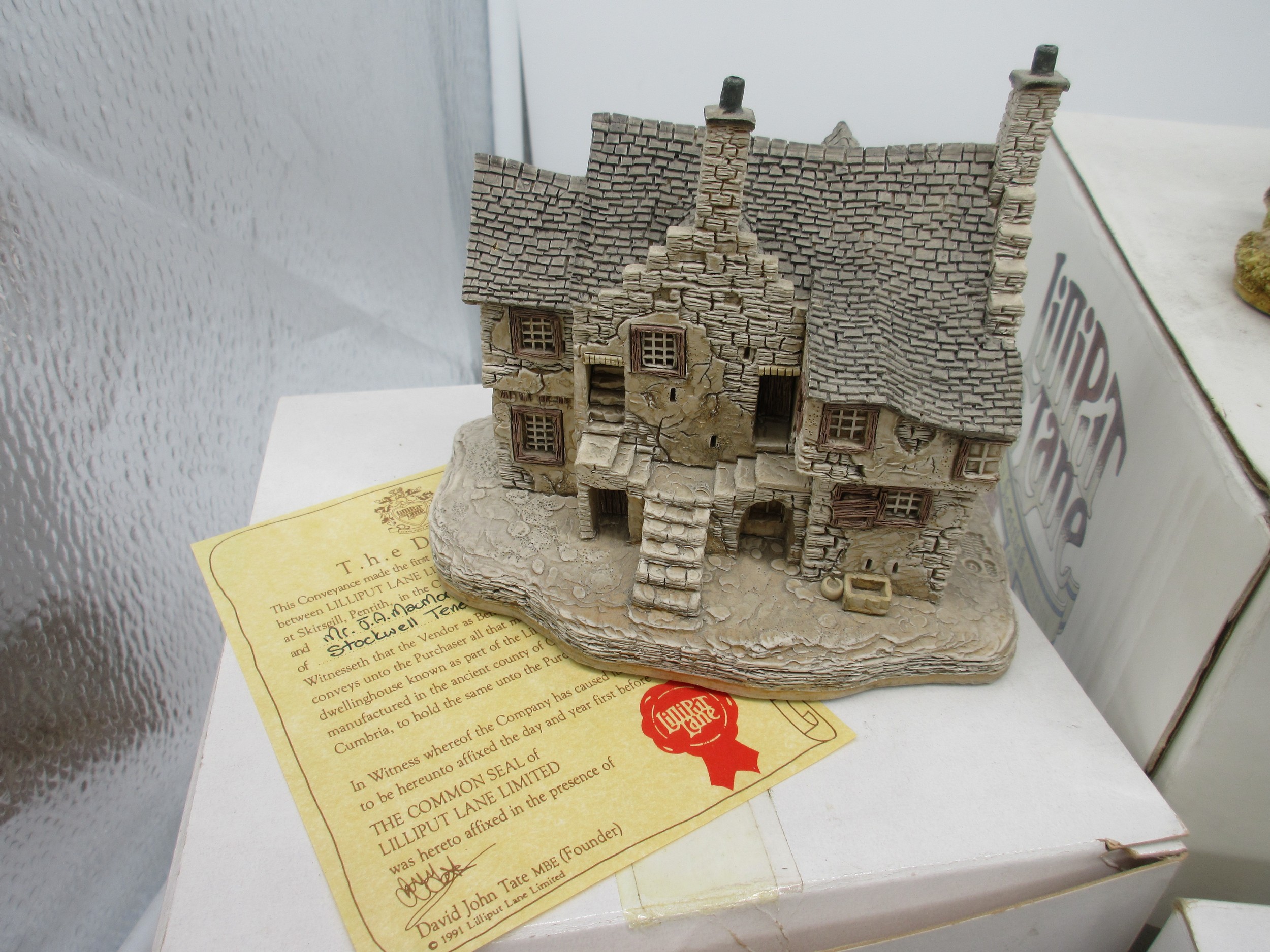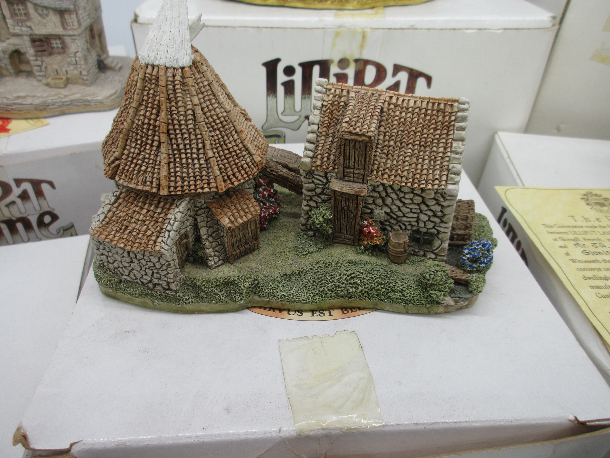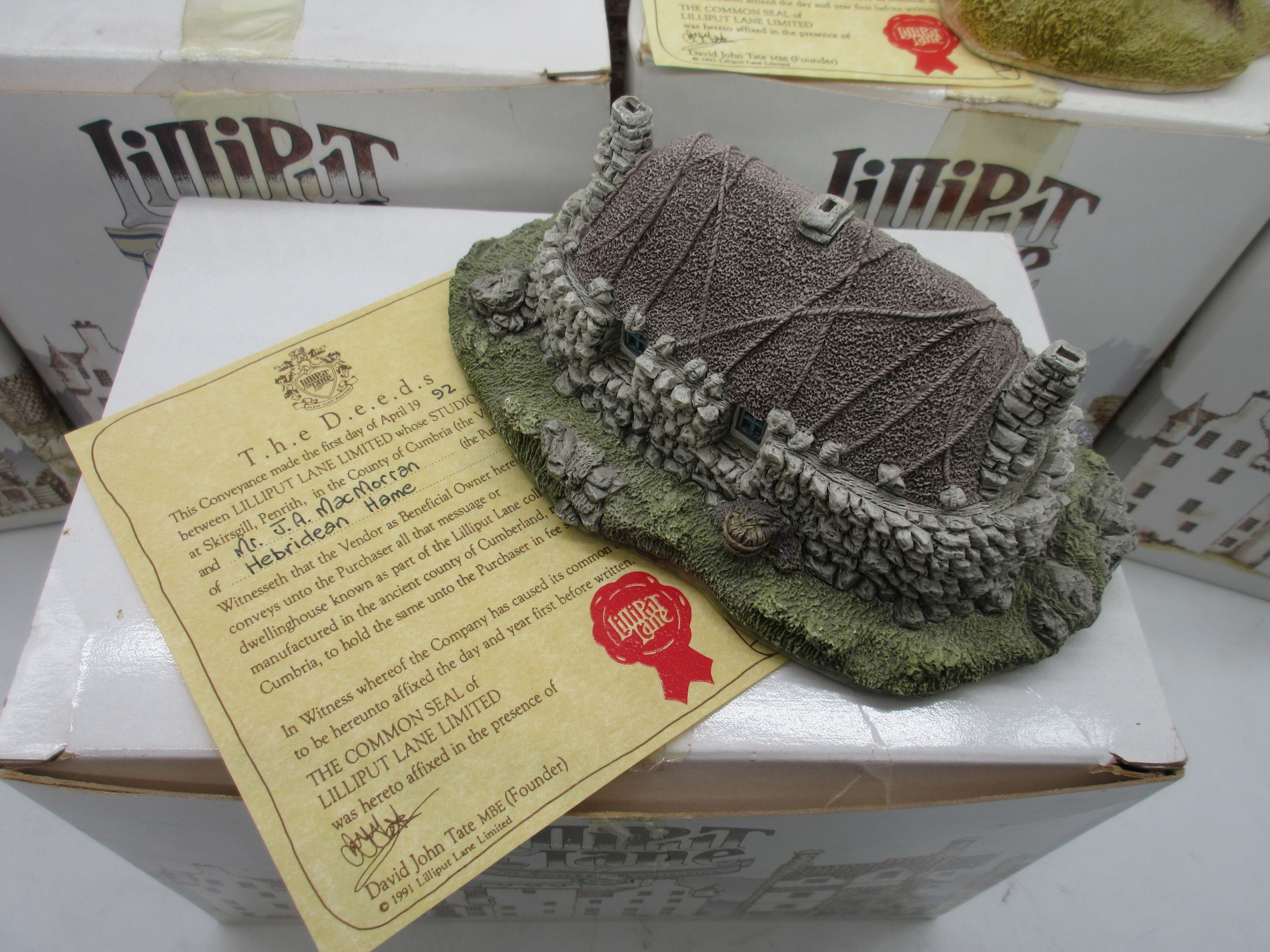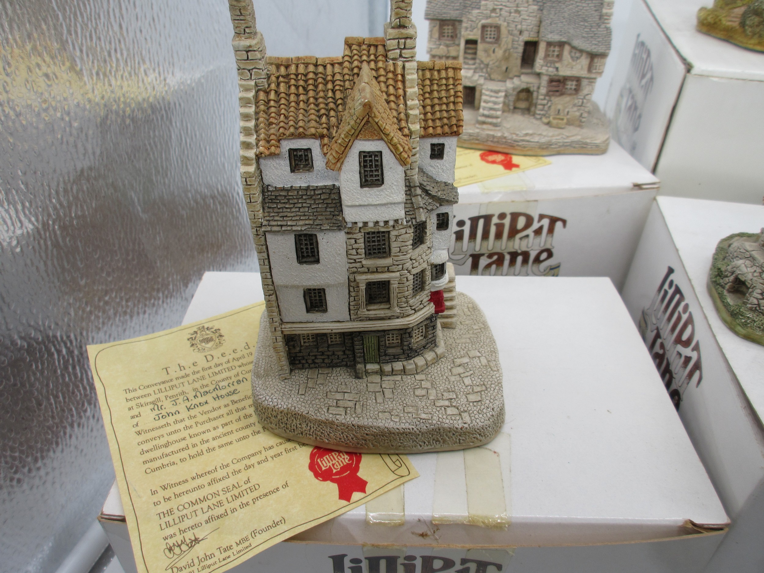 Lilliput Lane Scottish Collection - Boxed limited edition model, 'Cawdor Castle' (1185/3000), with certificate of authenticity, H25cm x 20cm; Craigievar Castle; Stockell Tenement; John Knox House; Hebridean Hame; Claypotts Castle; Glenlockie Lodge; Preston Mill; Qty 8