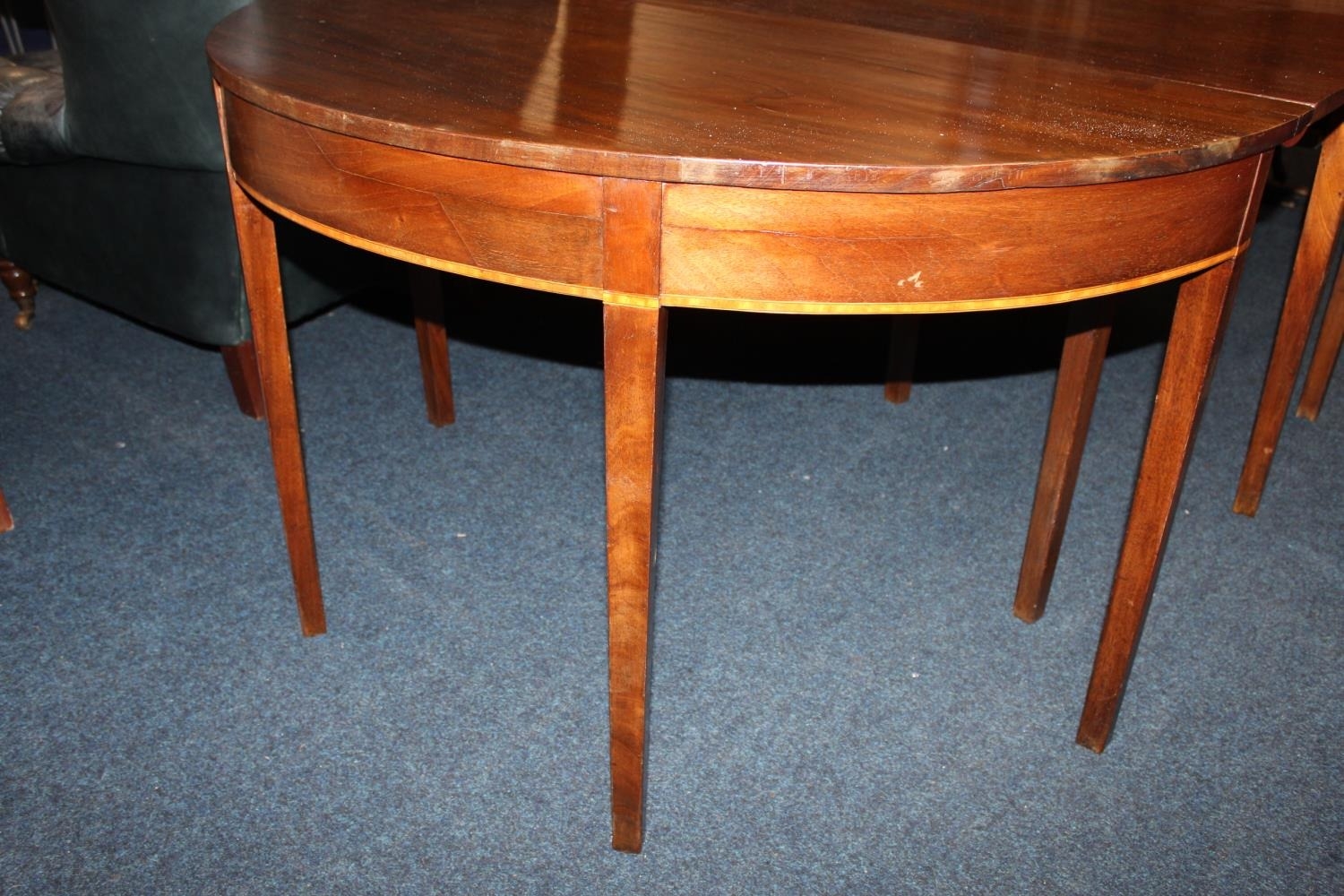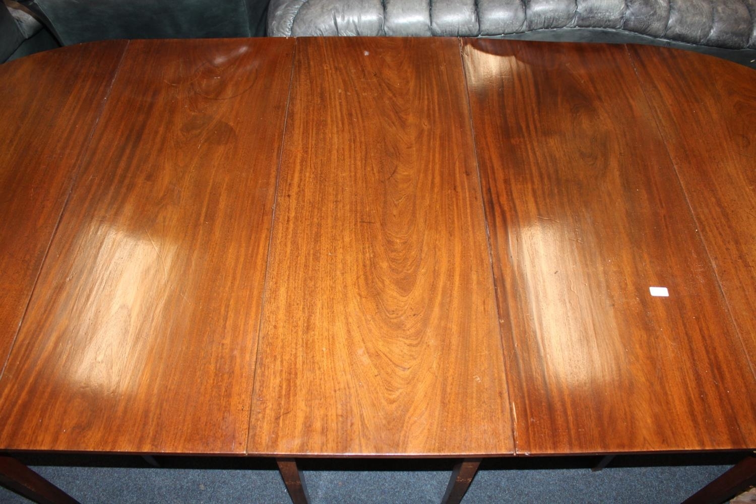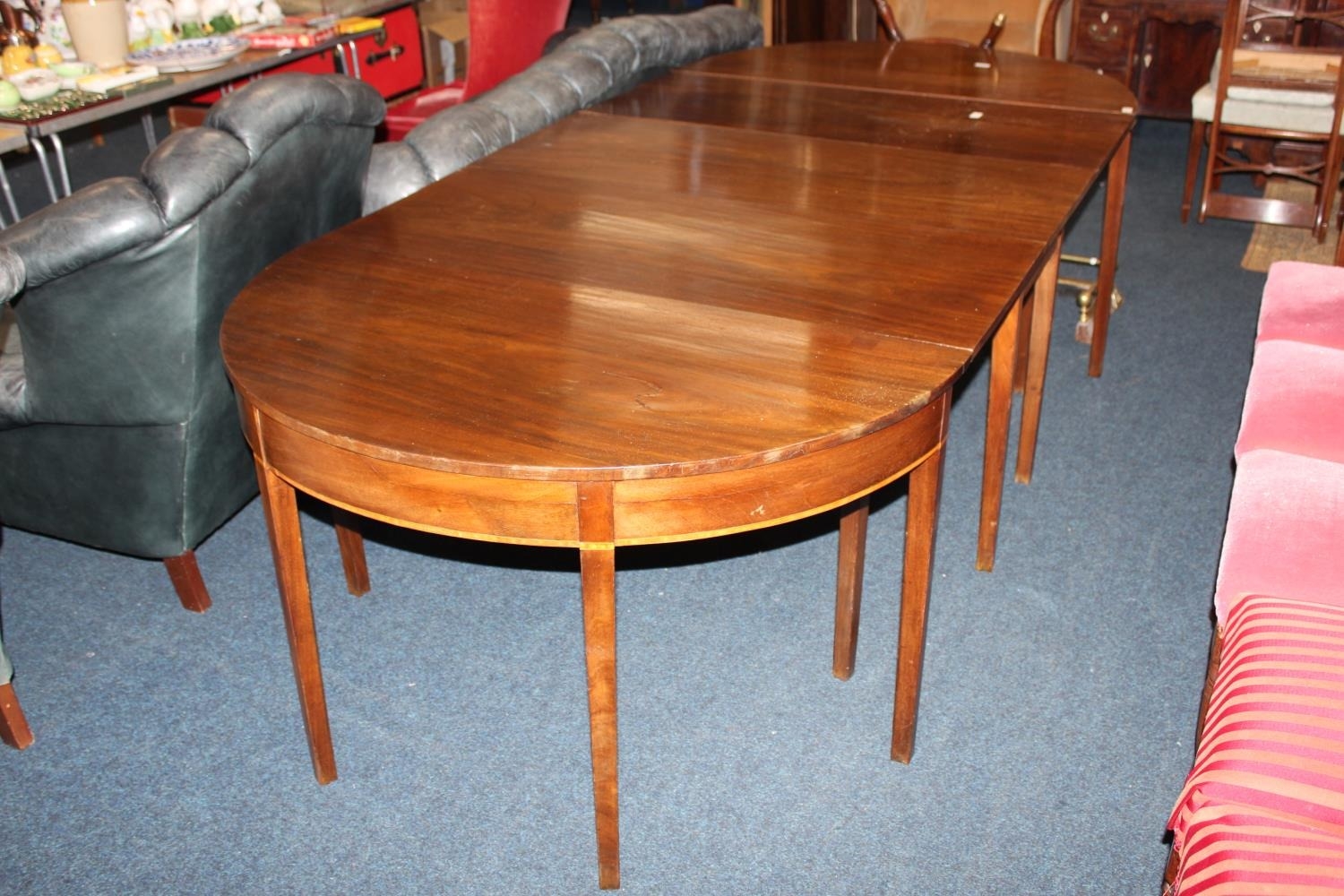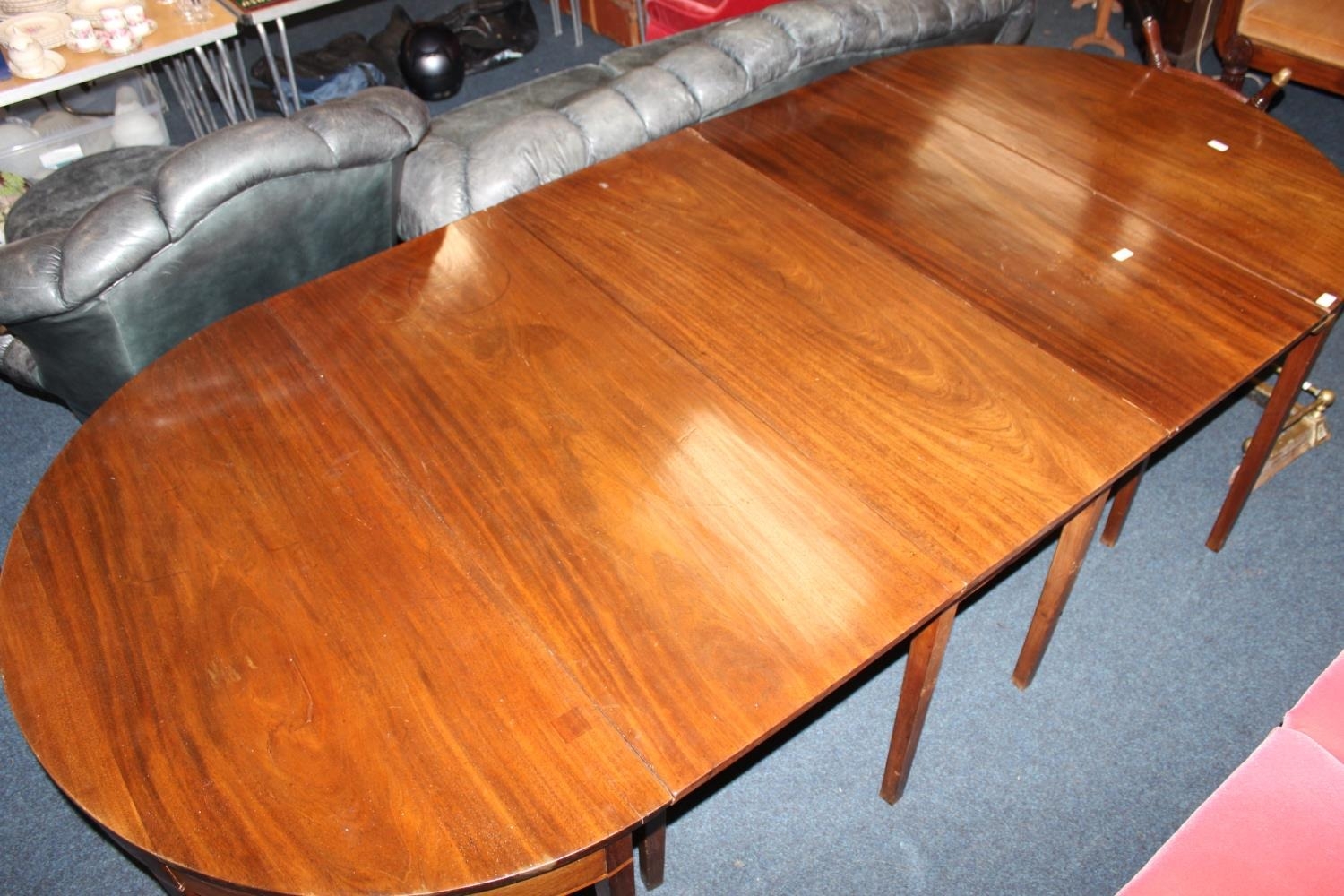 Victorian mahogany D-end table, raised on square tapered supports, 270cm x 125cm.