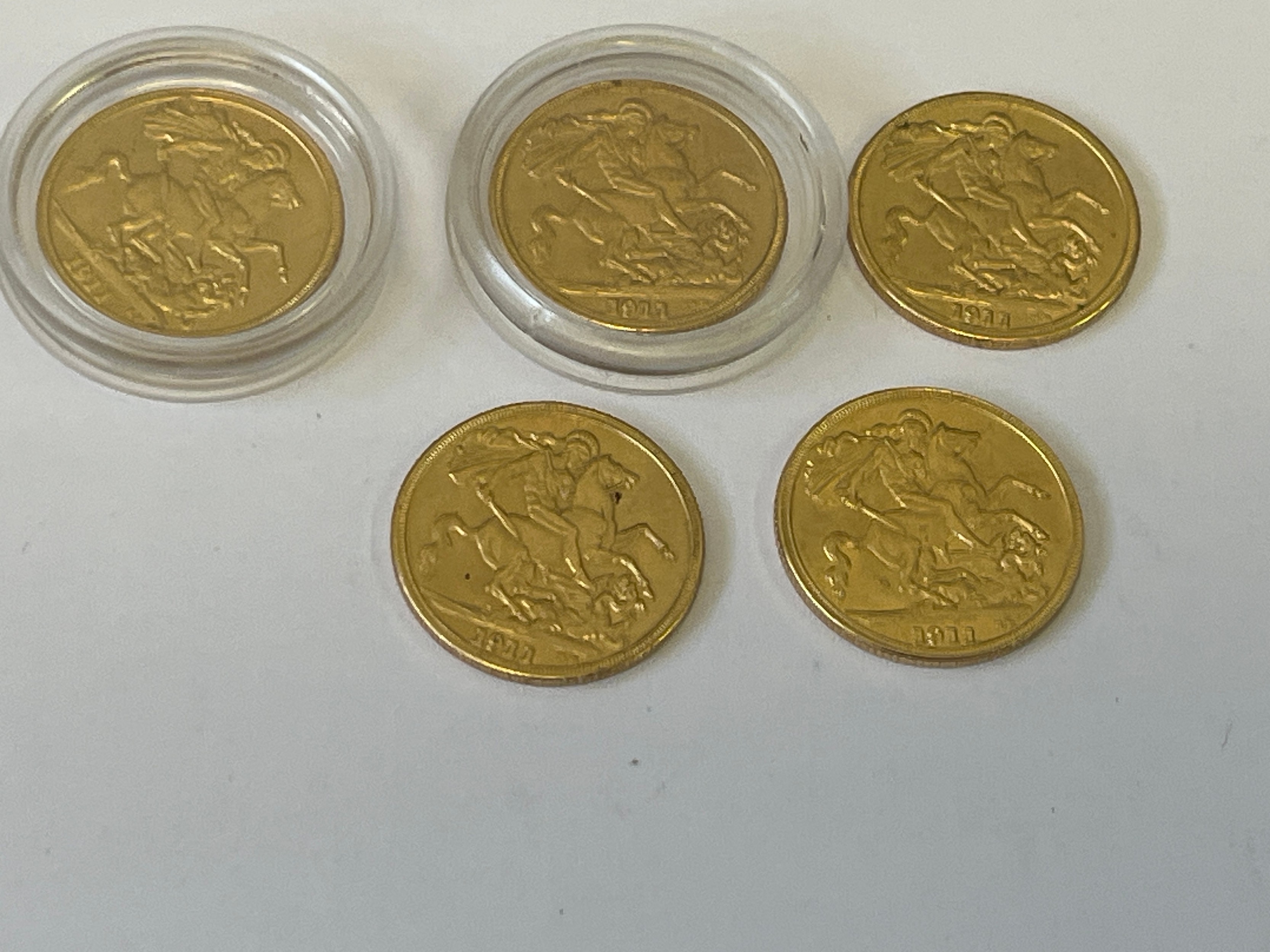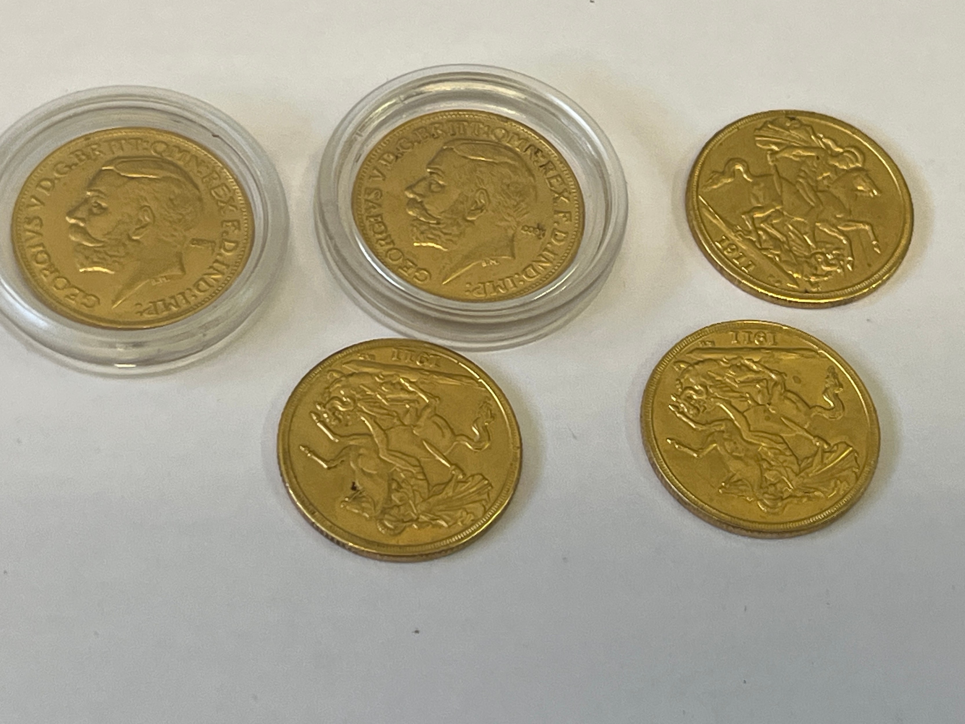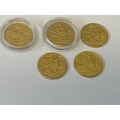 A COLLECTION OF 5 SOVEREIGNS 2 IN PLASTIC CASES ALL IN GOOD CONDITION THESE ARE COPIES